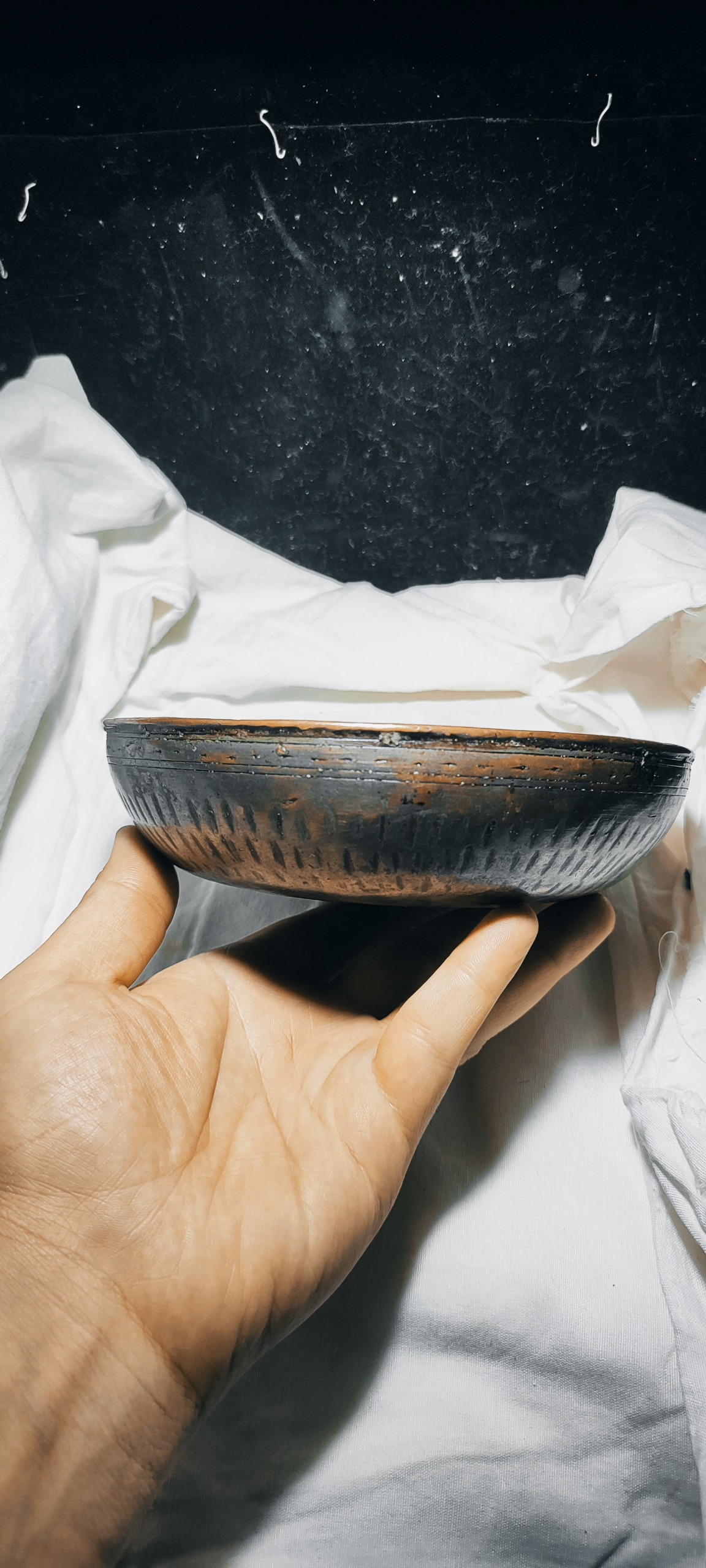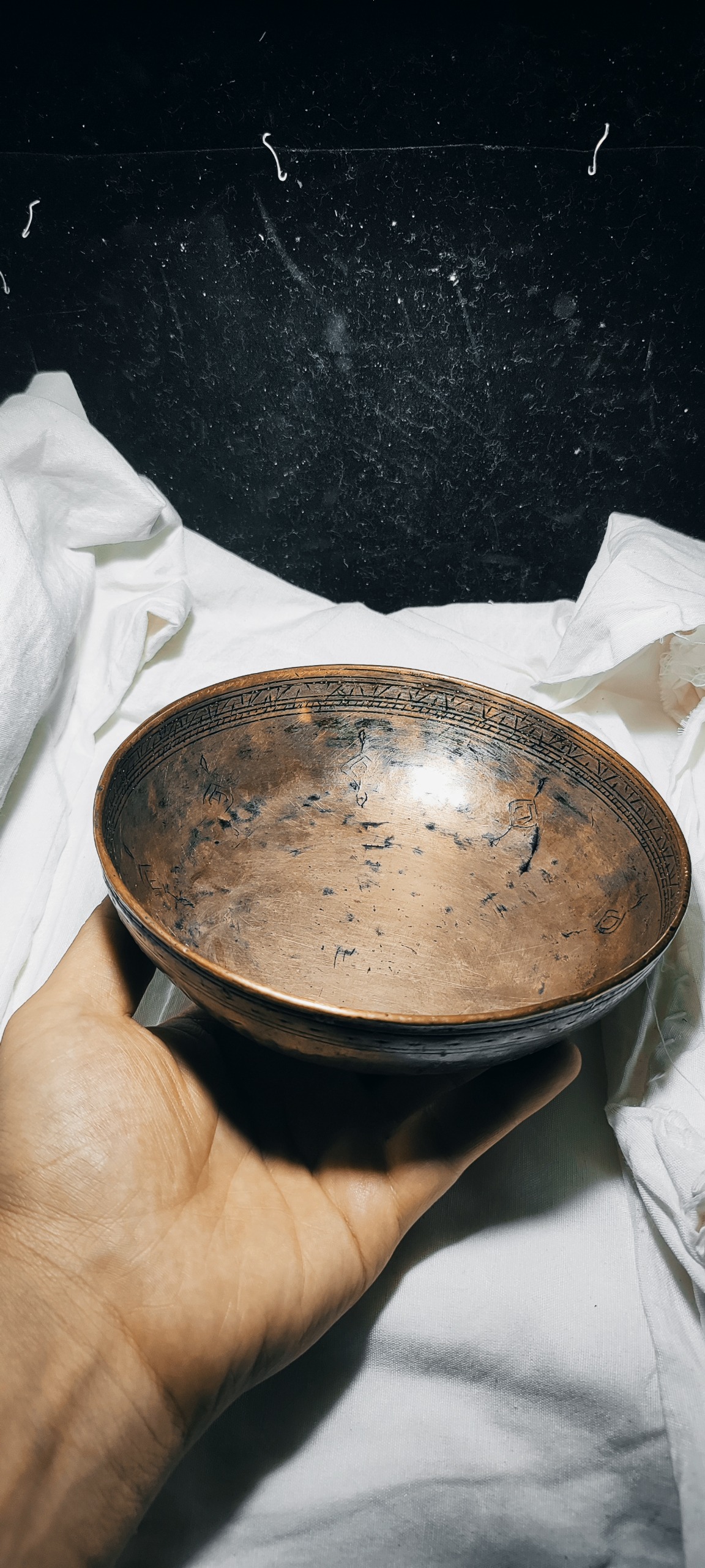 کاسه مسی (دخل)صفوی بسیار خاص و زیبا تمام کار دست قلم کاری شده داخل دور تا دور قلم کاری شده و بیردون قلم کاری شده هنر بسیارزیبا و خاص اصفهان همراه مهر سازنده  فوق کلسکیونی مخصوص عزیزان خاص پسند و کلکسیونر و مجموعه دار قطر 18سانت