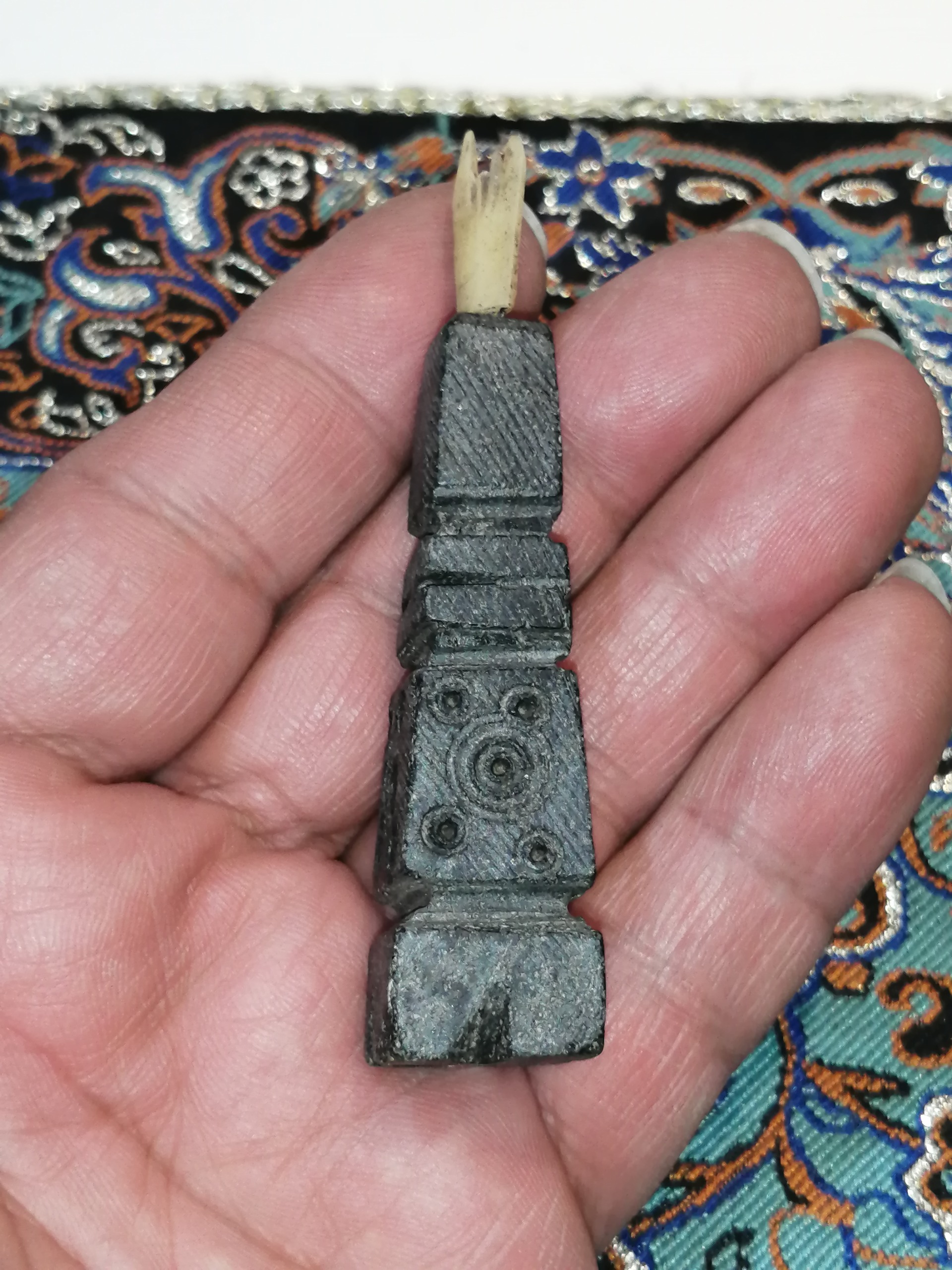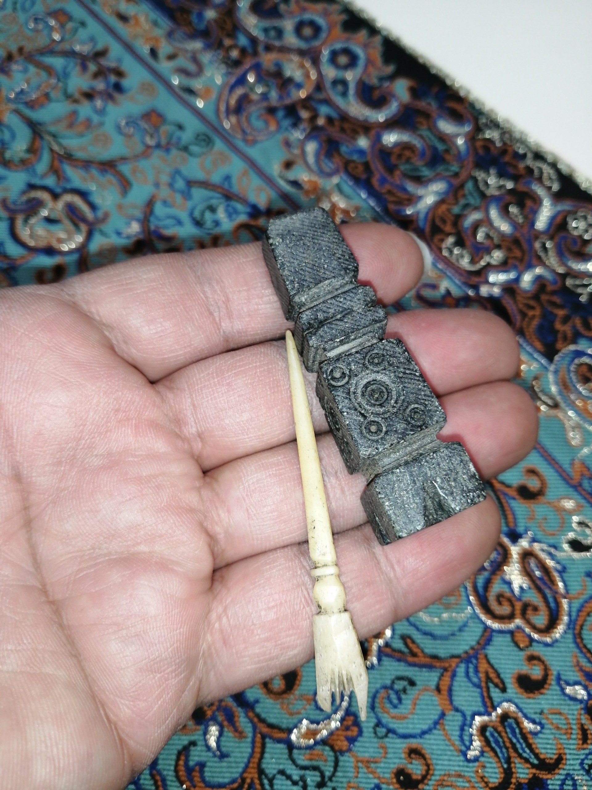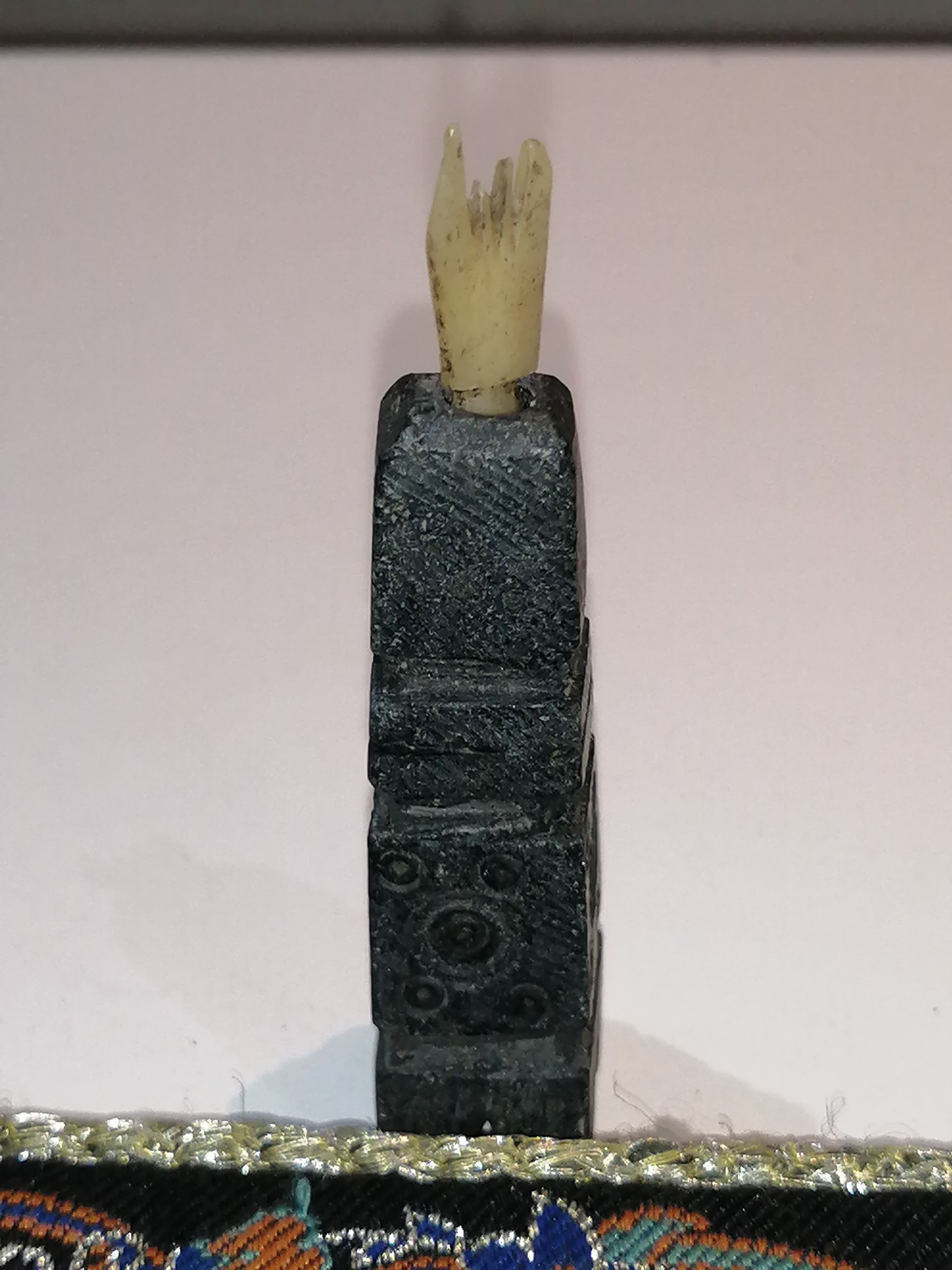 سورمه دان یشم کهنه با میله استخوان