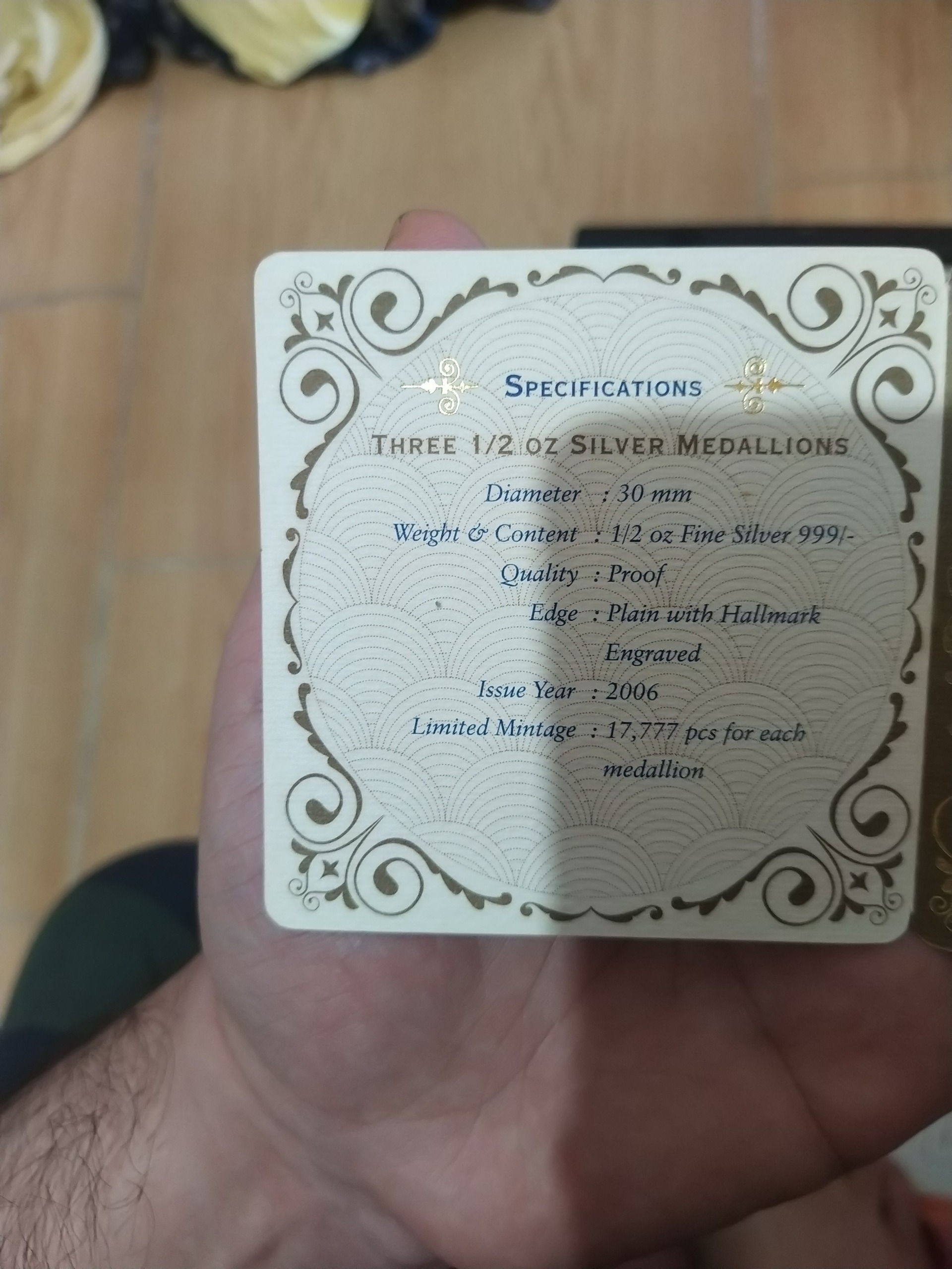 سلام مجموعه کلکسیونی گلدکوئست حاوی یک سکه به وزن0.1اونس معادل 3/11 گرم با عیار 24 و سه سکه نقره هر کدام0.5,اونس که مجموعا پنجاه گرم با خلوص 999 میباشد کار وکیوم است و ضرب شرکت سرشناس برنارد اچ مابر میباشد و شناسنامه اثر هم دارد قیمت بالاتر از تابلو و جذاب برای کلکسیونرها سپاس