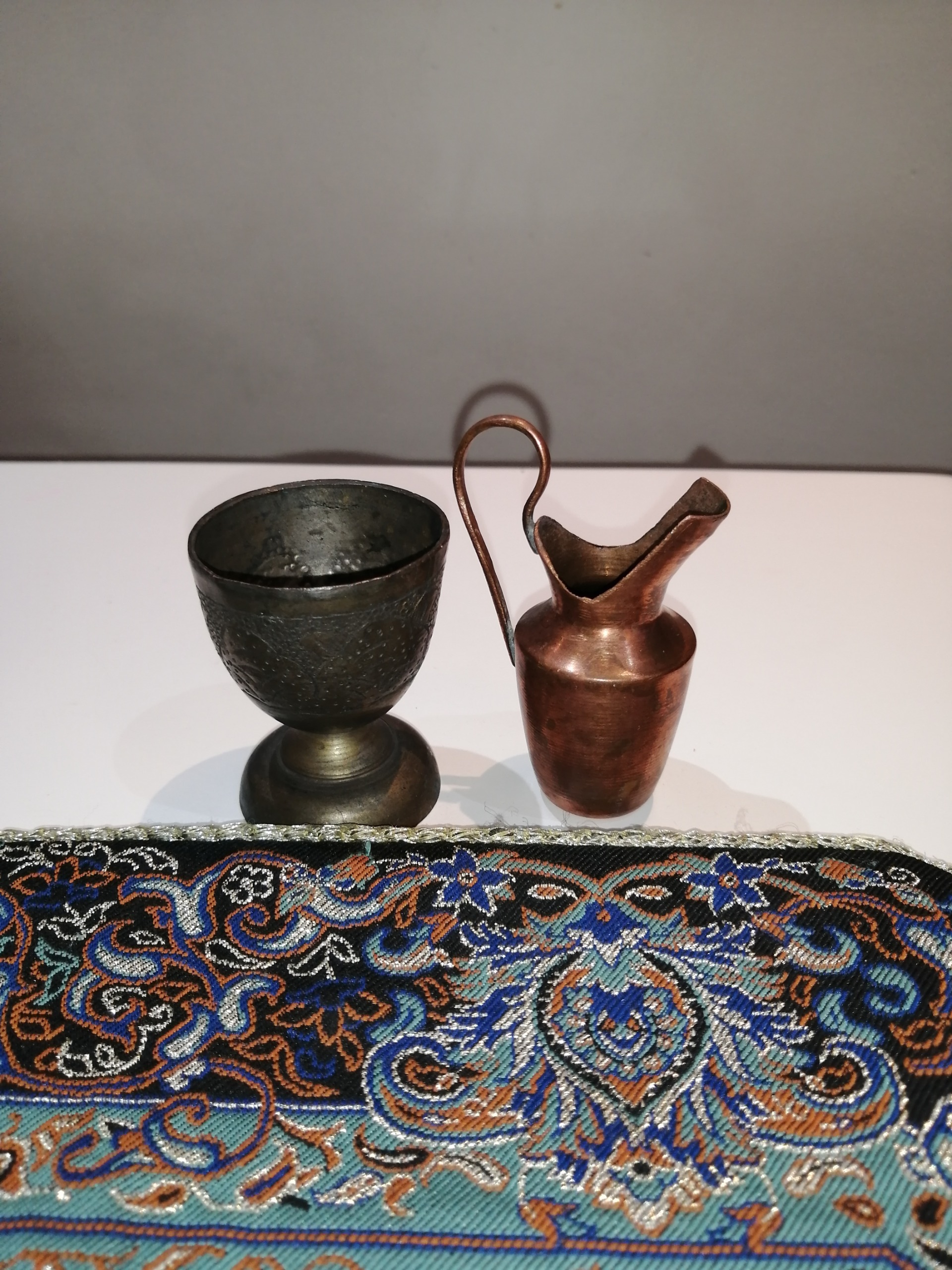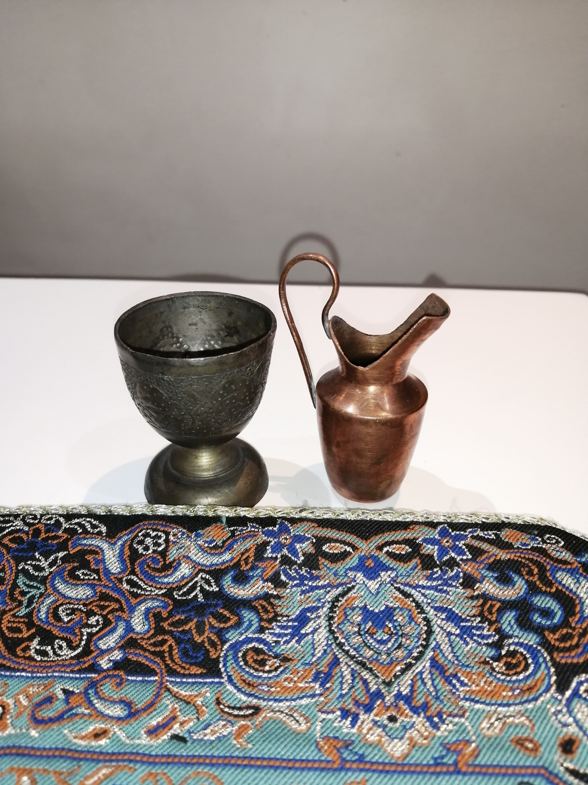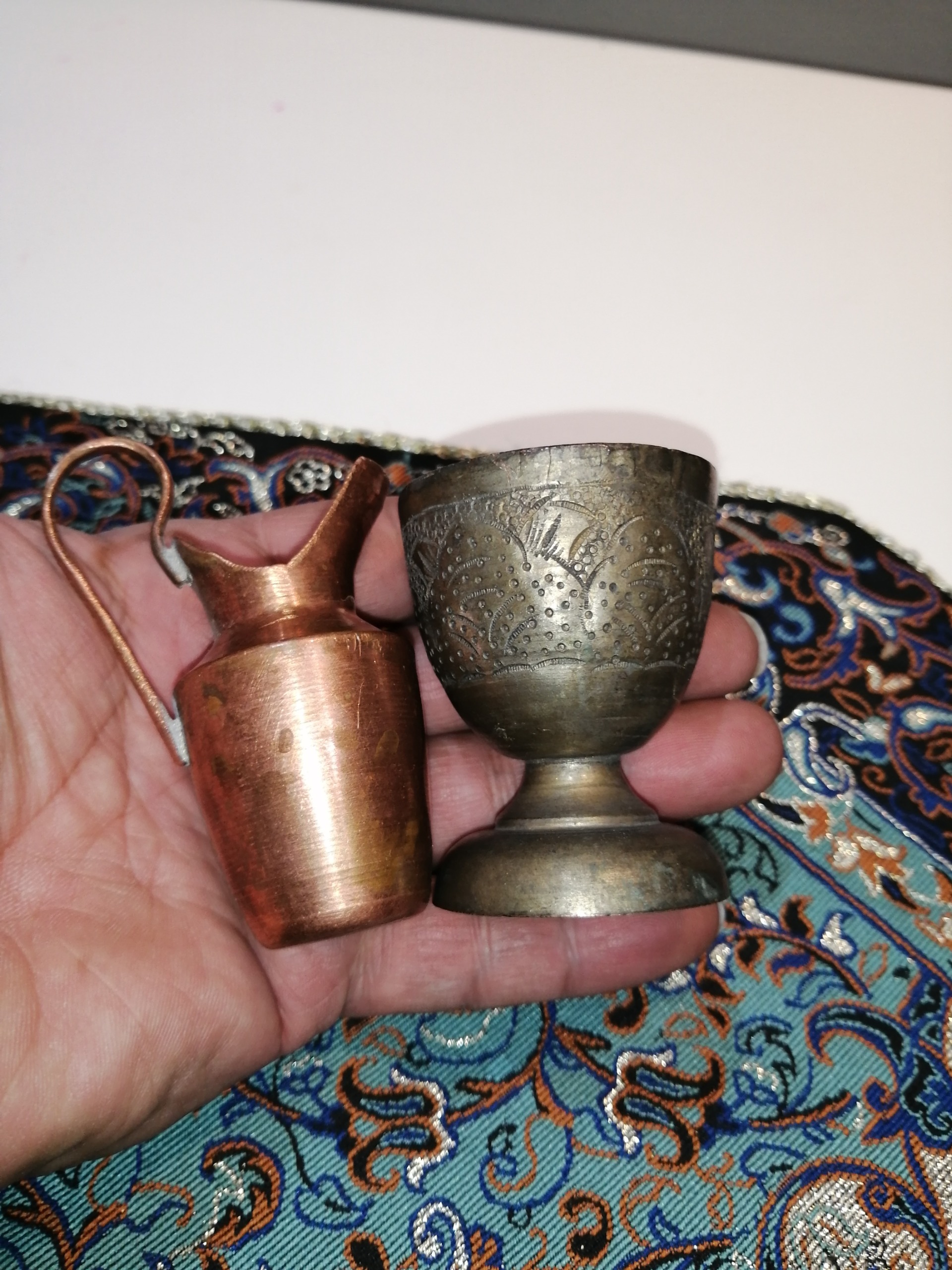 یک عدد پارچ مسی و یک عدد جام برنجی مینیاتوری مطابق با تصویر