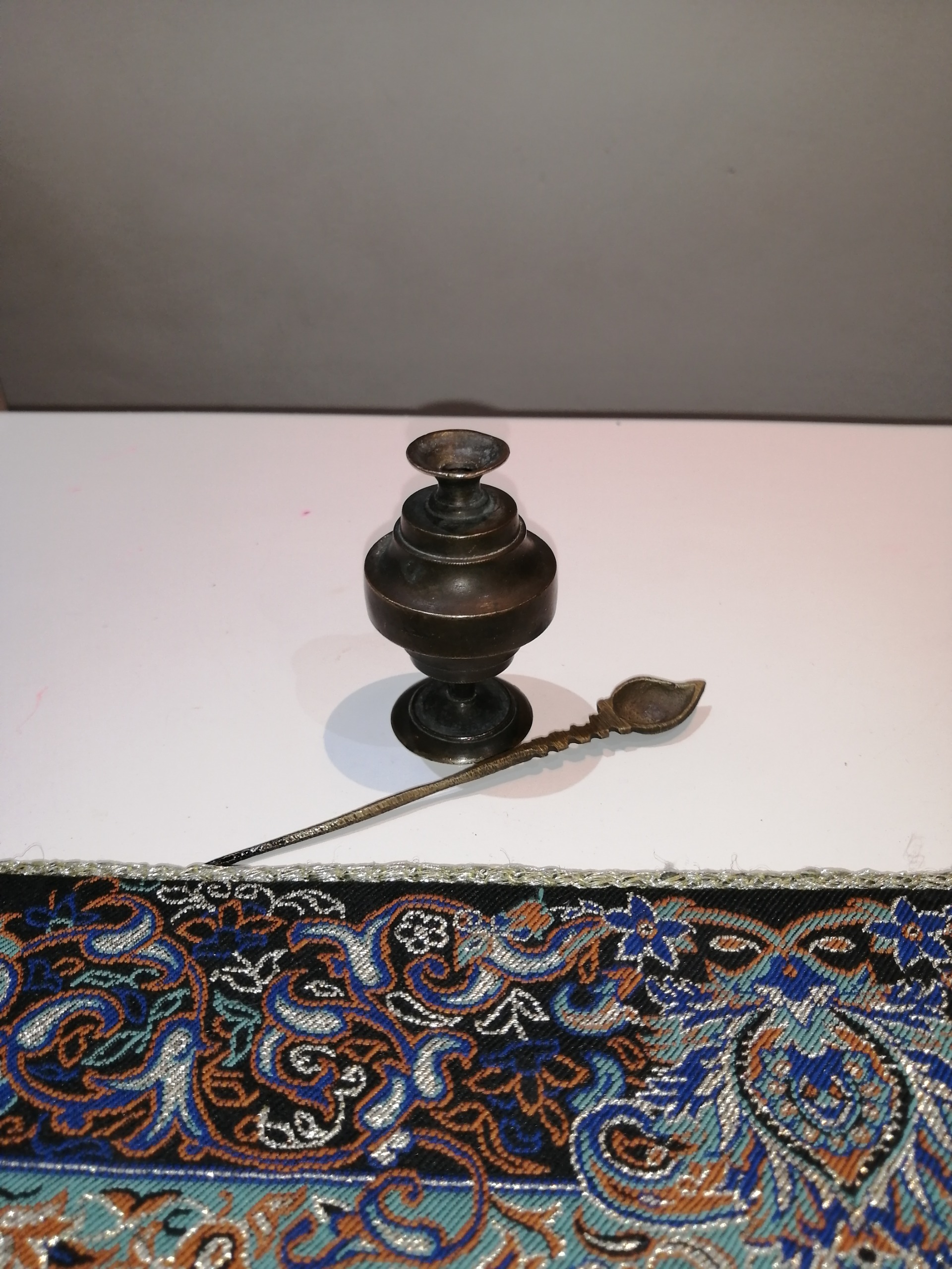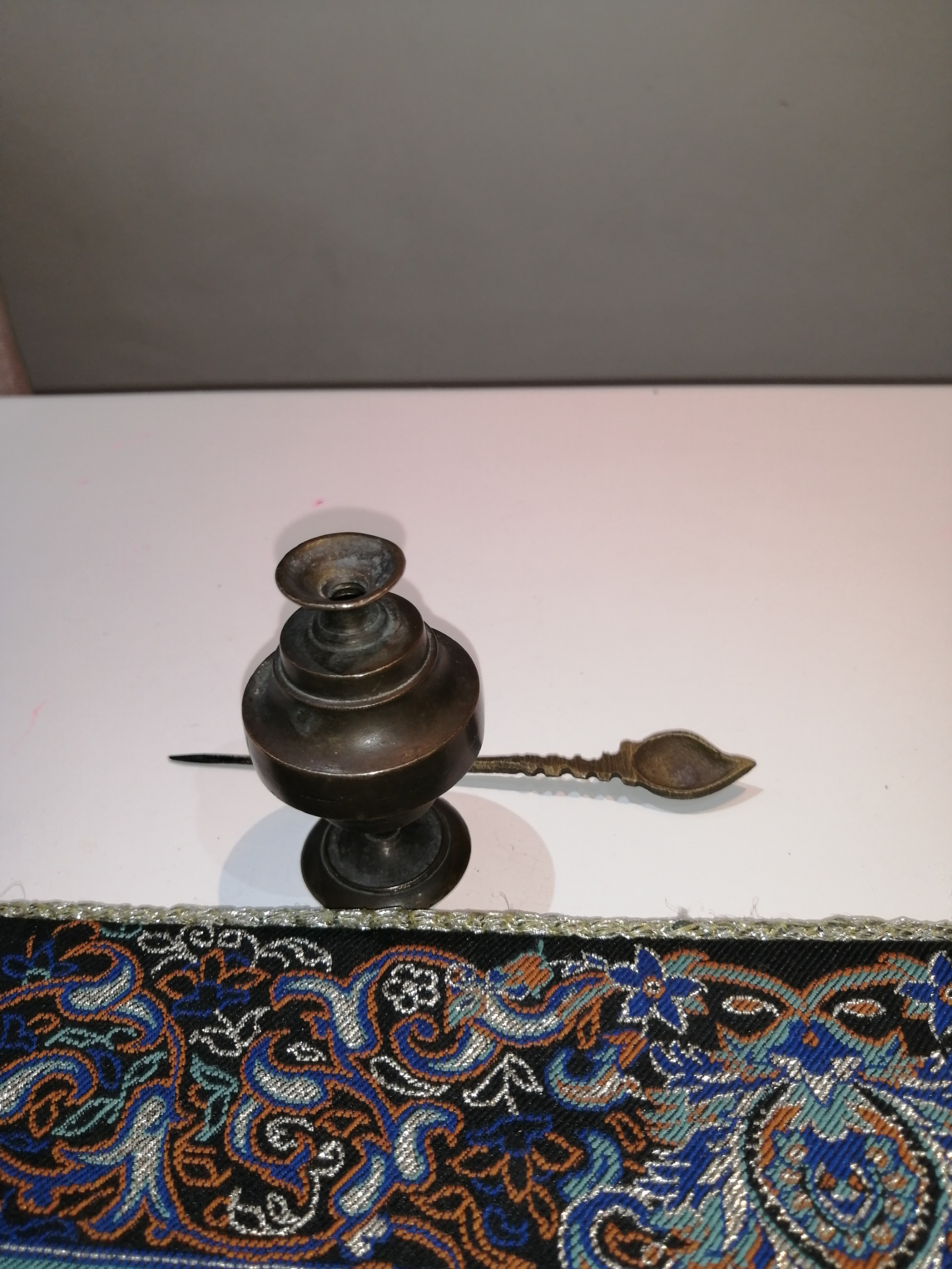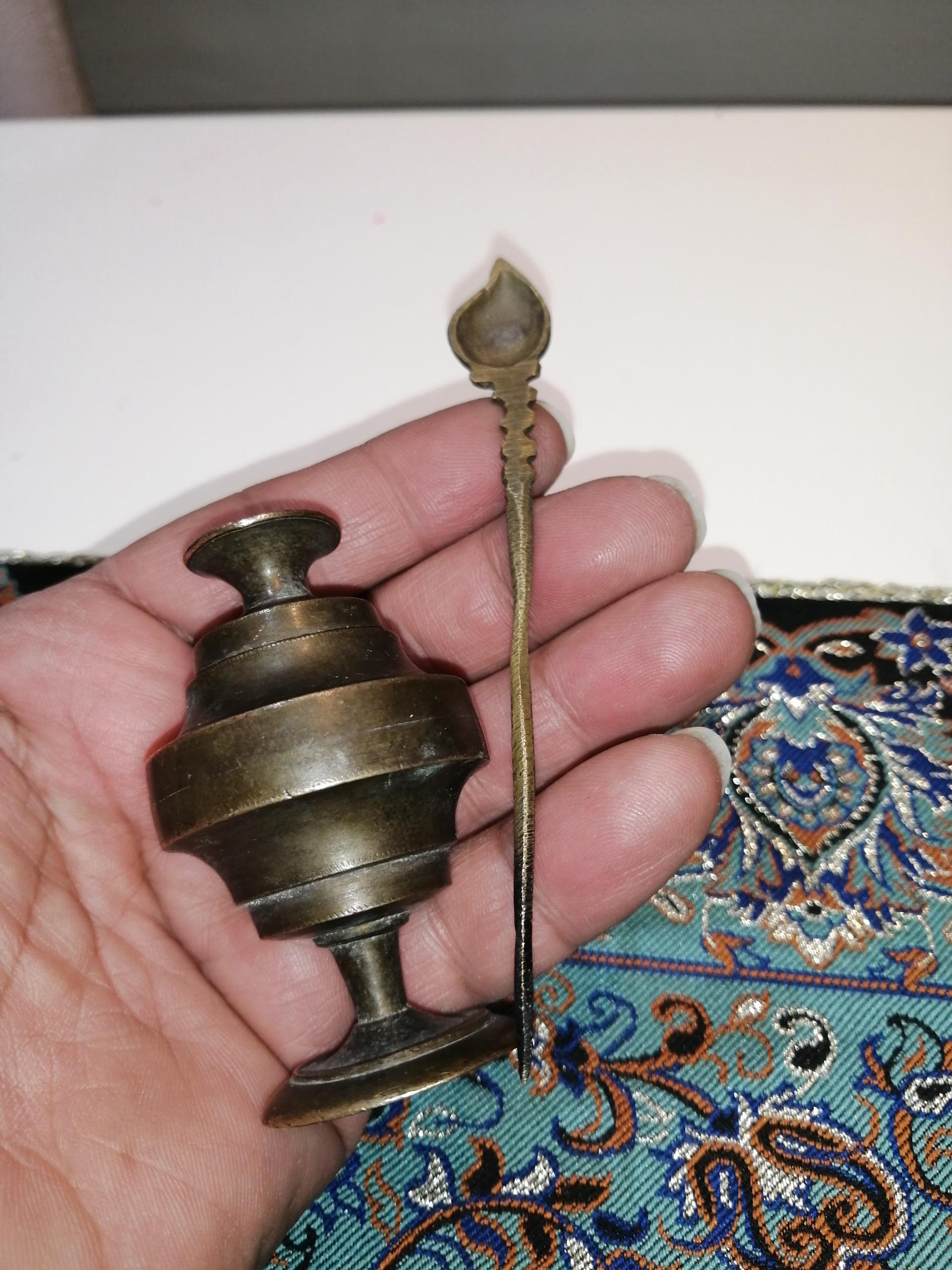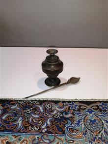 سورمه دان زیبا و کهنه که میله سورمه مال خودش نیست به جاش قاشق جوهر دوات برنجی که با هم میاد گذاشتم خیلی زیباست