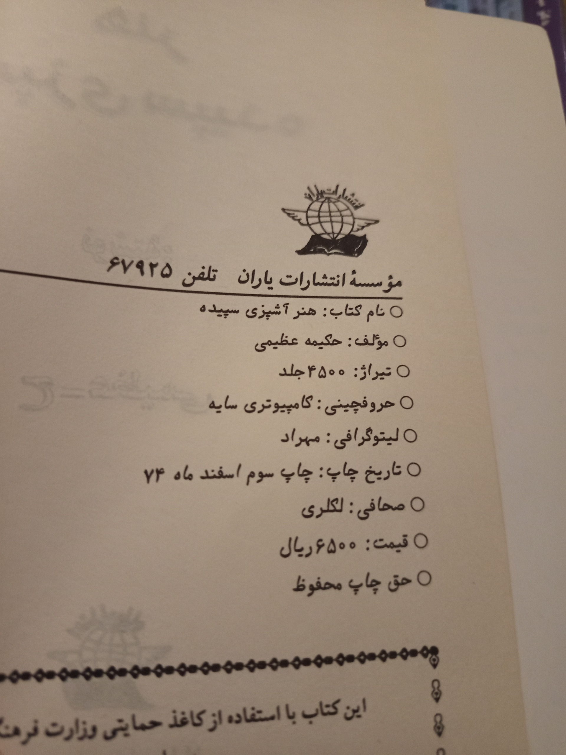 | نوع چاپ کتاب | چاپ اصل |