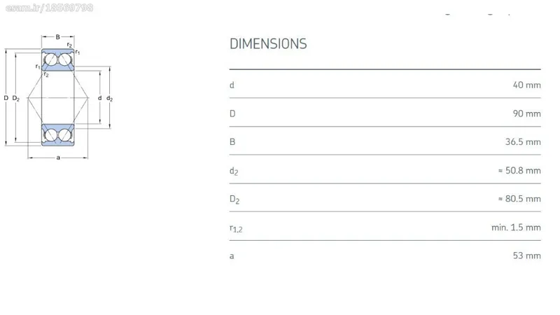 داخل 40 میلیمتر بیرون 90 میلیمتر پهنای بلبرینگ 36.5 میلیمتر (مطابق عکس آخر)
