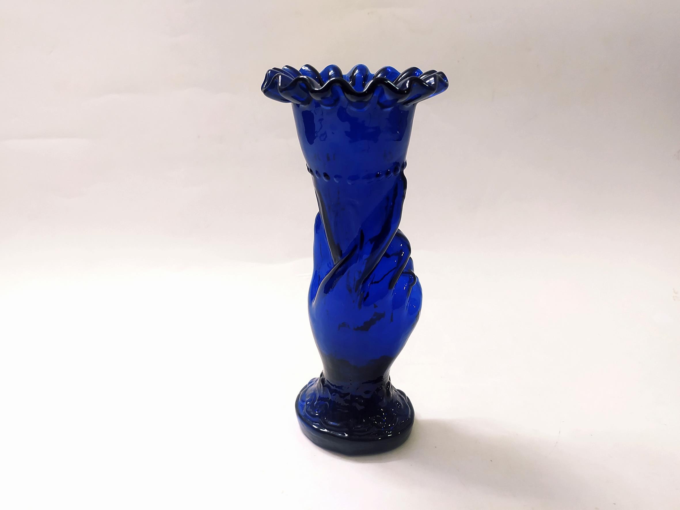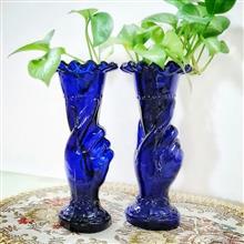 2 گلدان شیشه ای کبالتی دست دلبر قدیمی (کد70-44369)