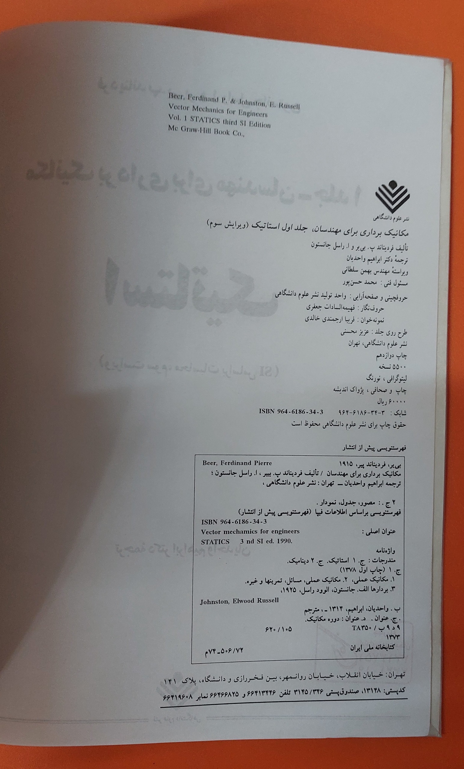 کتاب استاتیک بی یر و جانسون ترجمه ابراهیم واحدیان
