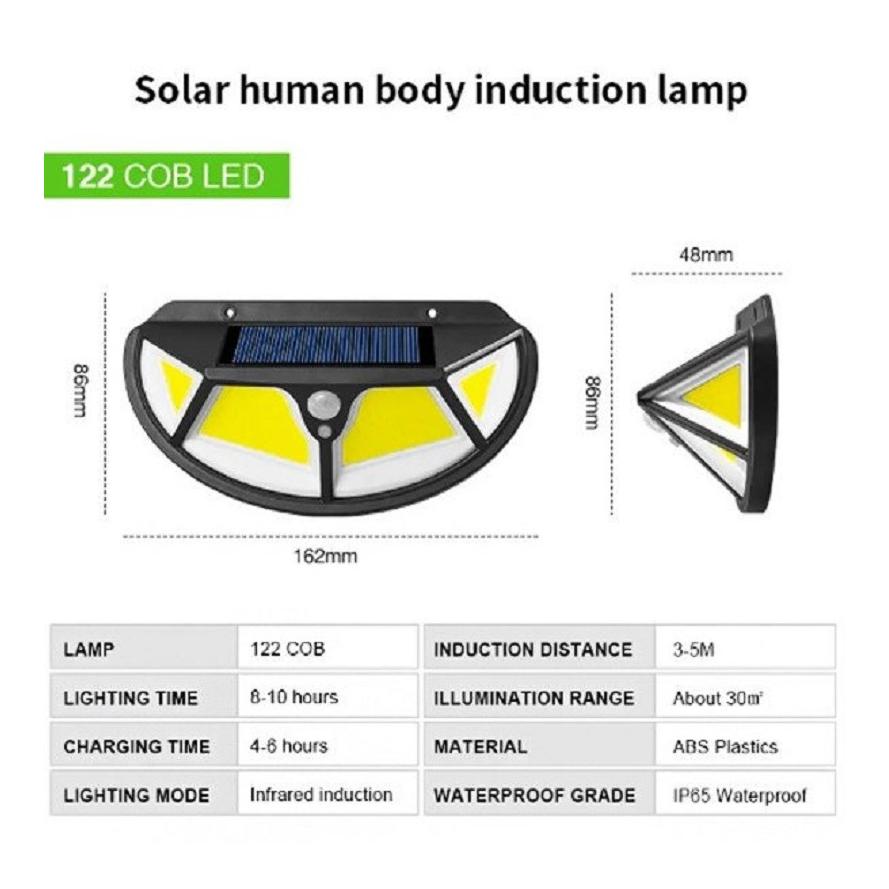 مشخصات چراغ دیوارکوب خورشیدی سه حالته سنسوردار COB مدل SH-122 :