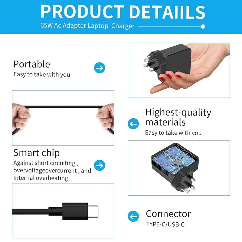 محافظ های داخلی شارژر لپ تاپ 65 واتی نوع C از دستگاه های شما در برابر گرمای بیش از حد، شارژ بیش از حد، جریان بیش از حد، بیش از حد برق، بیش از حد ولتاژ و اتصال کوتاه می کند. دریافت گواهینامه CE-/FCC-/RoHS، ایمن تر از سایر آداپتورها، بنابراین می توانید با اطمینان از آن استفاده کنید. آداپتور ac Etssembo Lenovo سبک و نفیس است، حمل آن آسان است و بهترین شریک برای سفر و سفرهای کاری است!