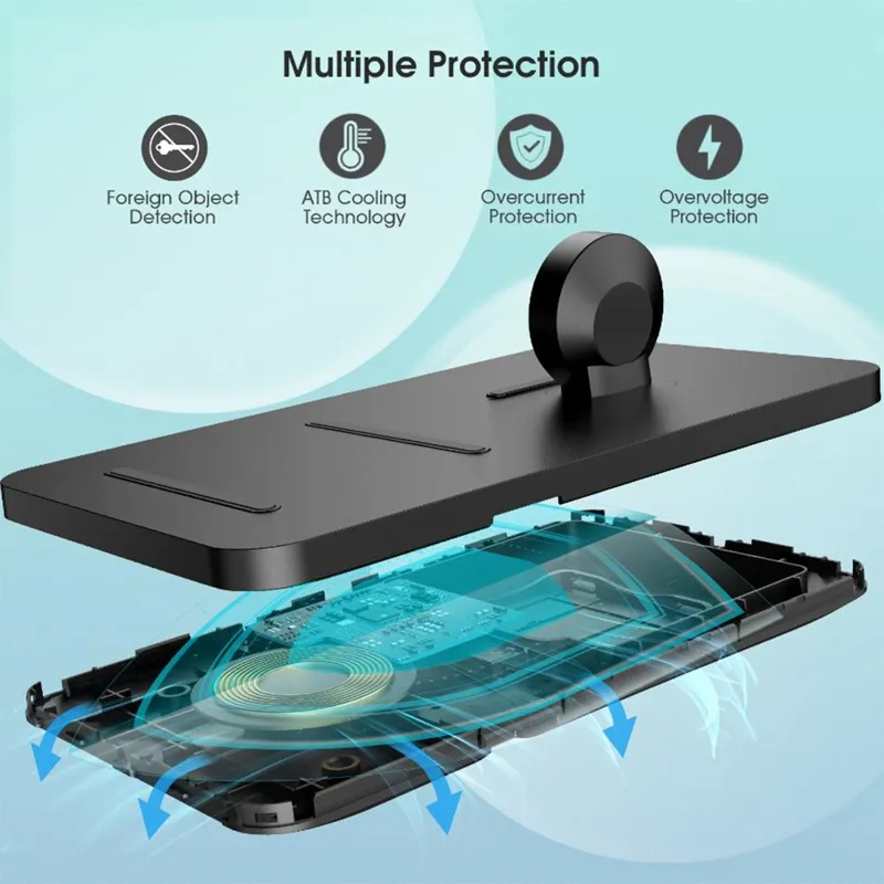 طراحی ویژه برای آیفون: شارژر بی سیم ما به طور ویژه برای محصولات iWatch آیفون و سری Airpod طراحی شده است. ایستگاه شارژ بی سیم حرفه ای ما مشکل شارژ آیفون را حل می کند.