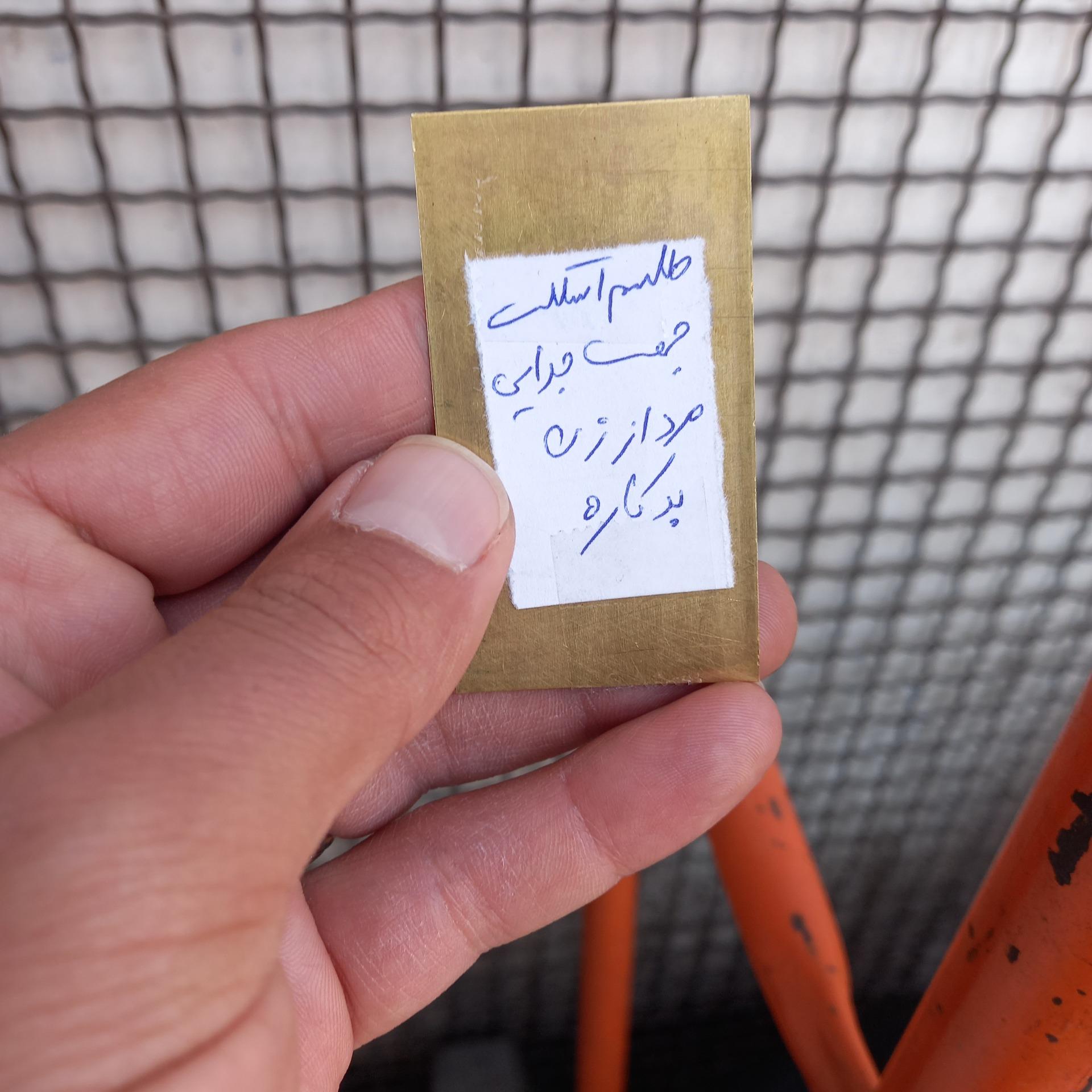 لوح برنجی با کیفیت خوب جهت جدایی مرد از زن بدکاره میباشد اندازه حدود 6سانت در4سانت