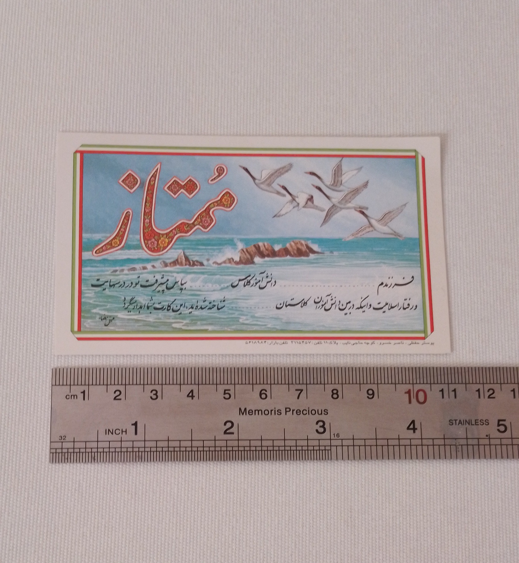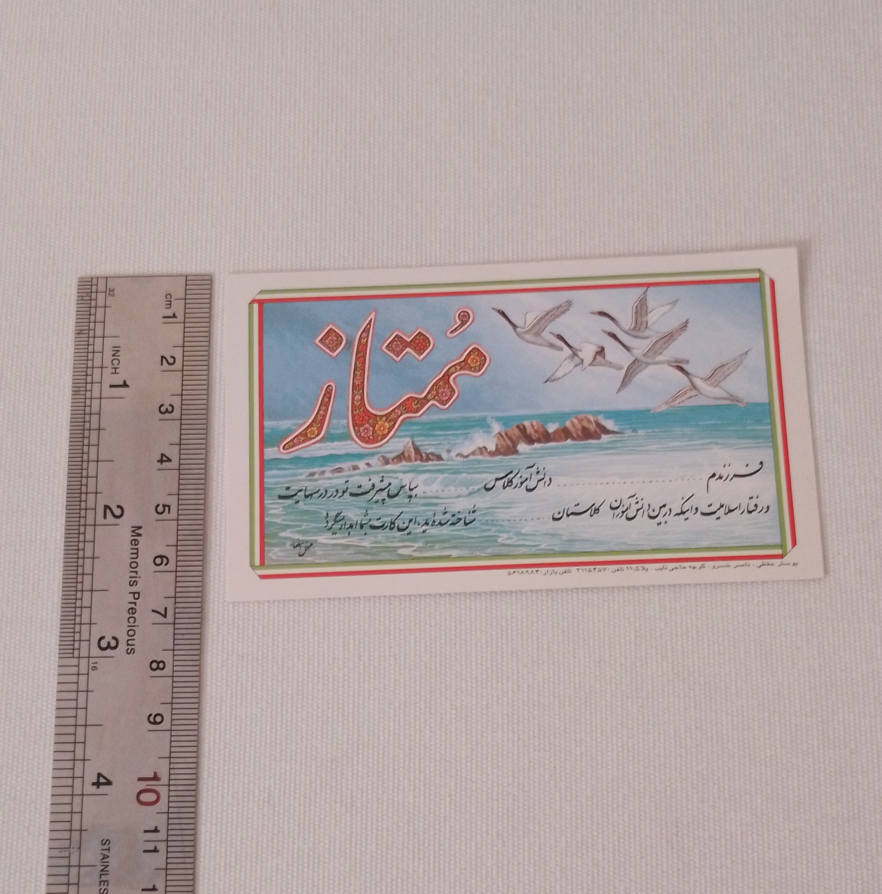 کارت تشویقی ممتاز قدیمی در ابعاد حدود 11در 6سانتیمتر
