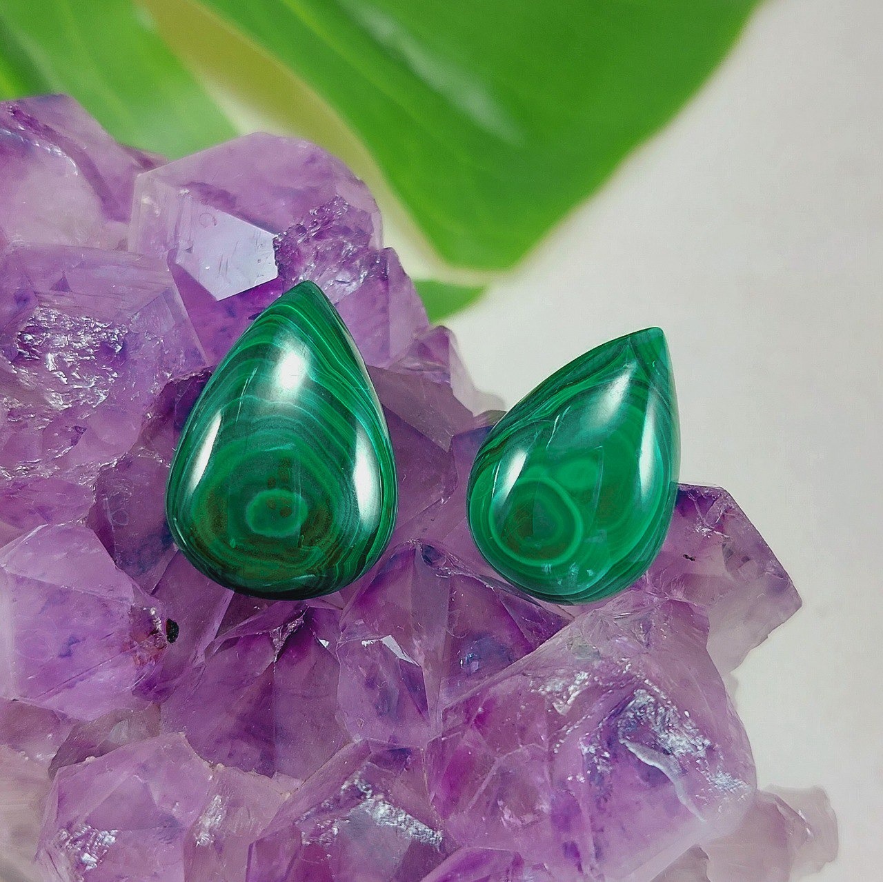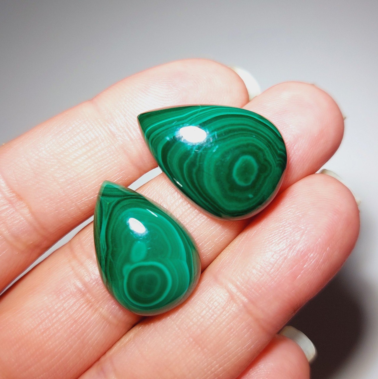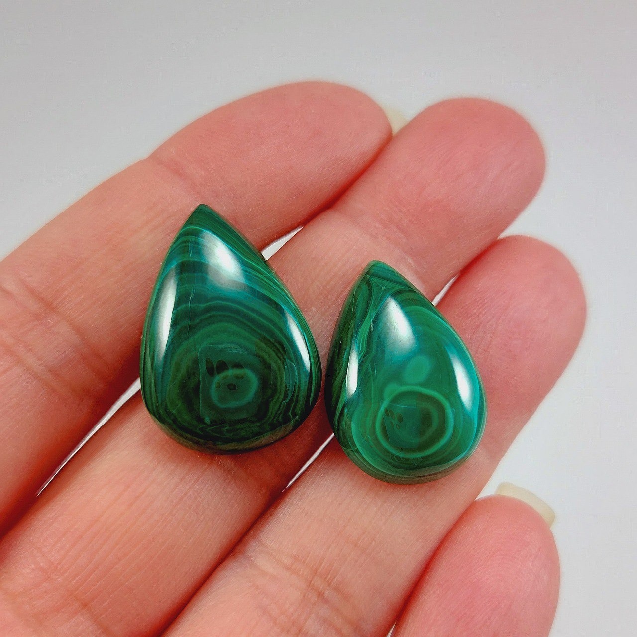 ست مالاکیت اشکی خوشرنگ و خوشنقش متعلق به کشور کنگو مناسب ساخت نیمست، گردنبند یا انگشتر جفت و...