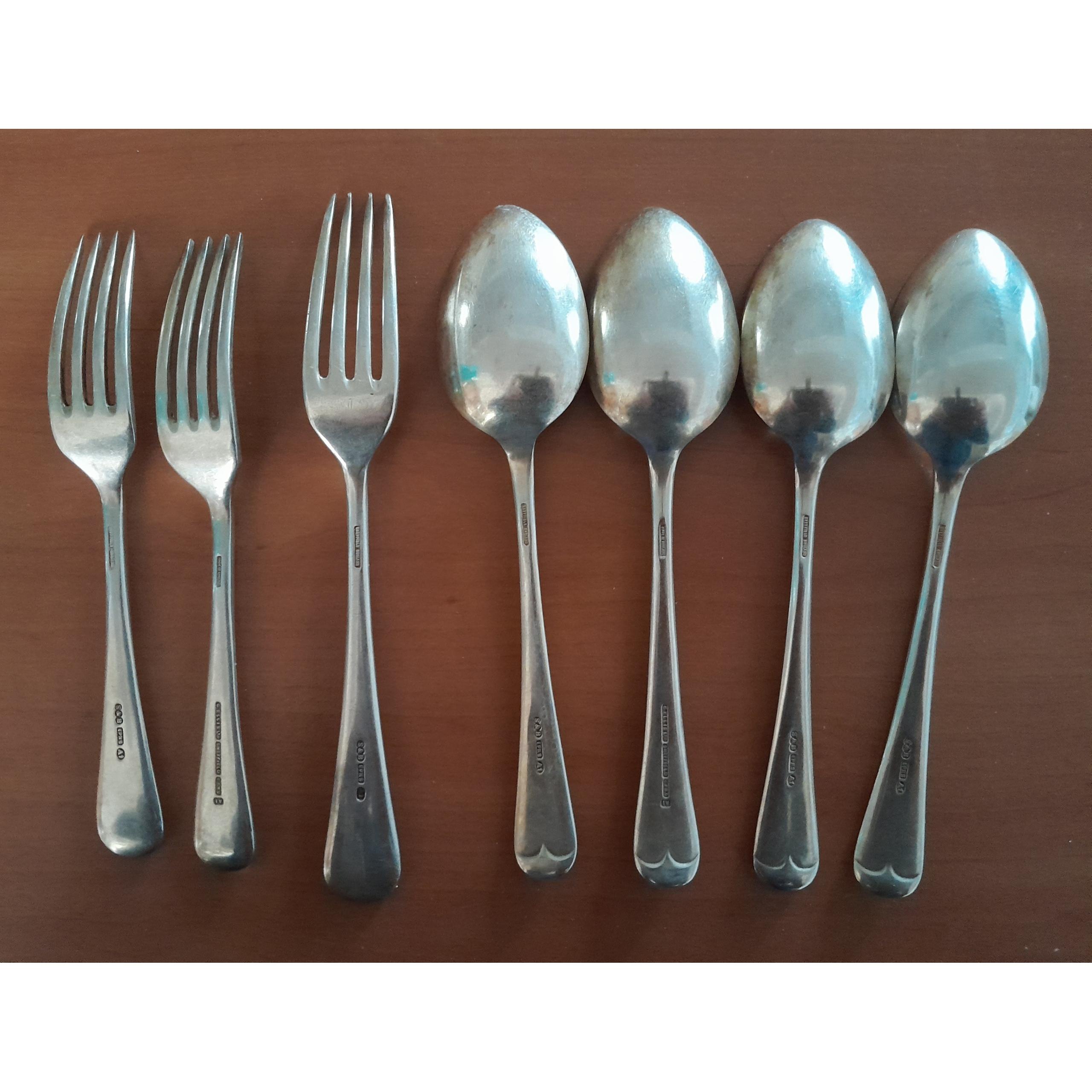 تعداد 4 عدد قاشق و 3 عدد چنگال آنتیک انگلیسی با قدمت بیش از صد سال