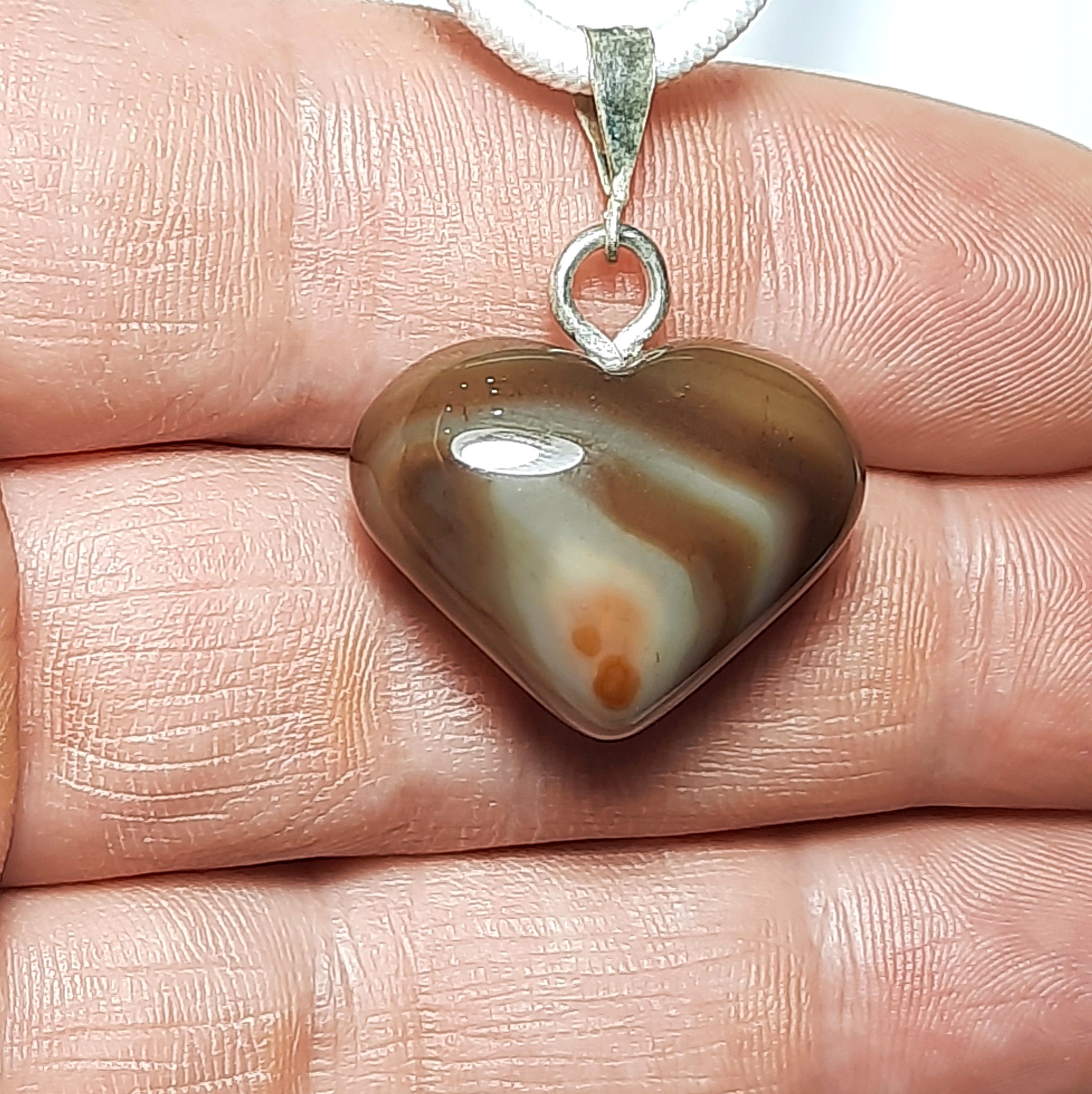 آویز عقیق سلیمانی کلکسیونی خوشرنگ درشت اصل معدنی با تراش قلب دقیق و بی نقص
