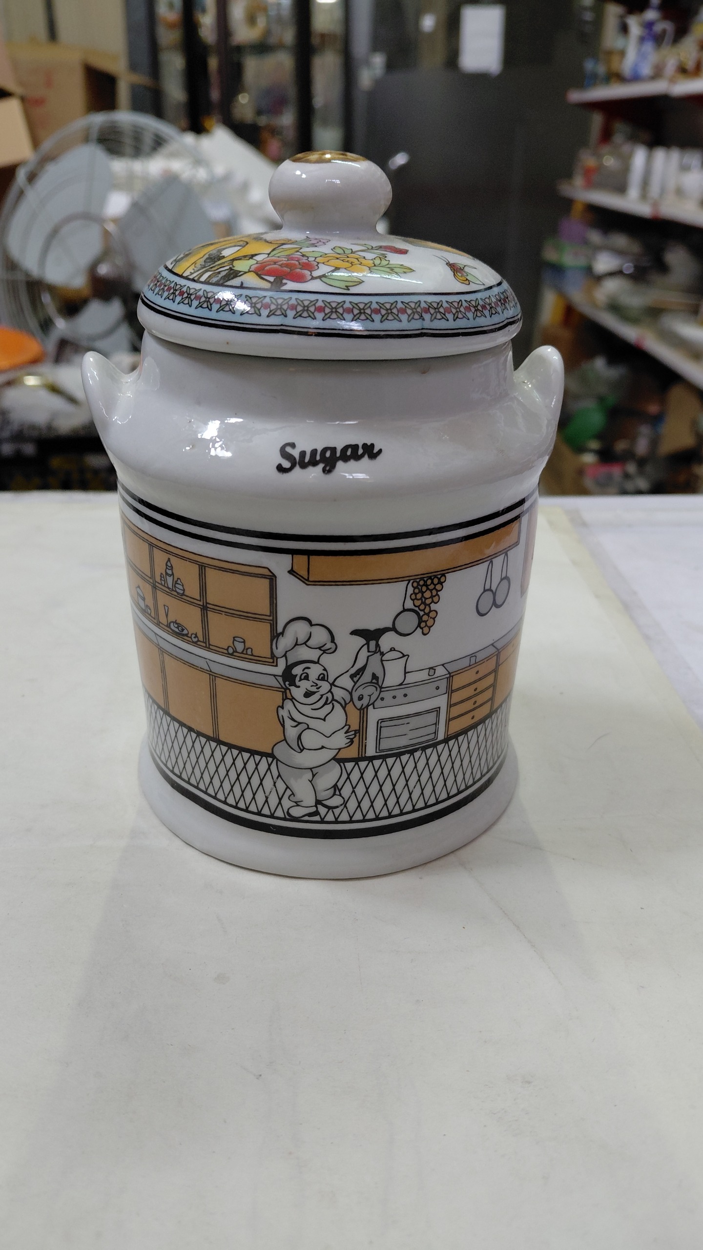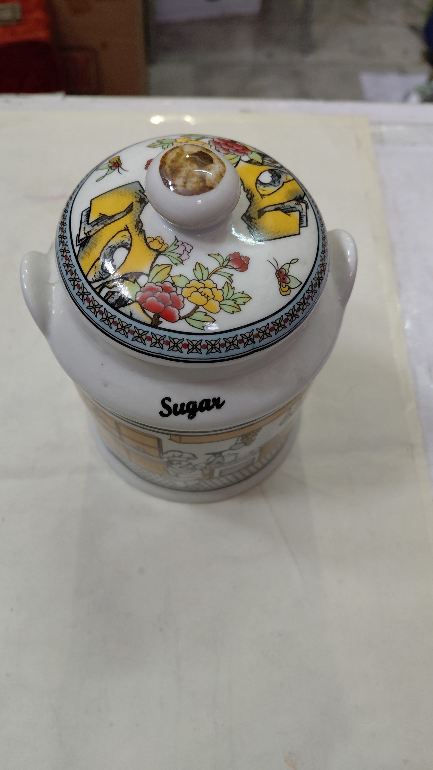 ادویه دان جنس چینی ساخت ایتالیا قطر 10 و ارتفاع 14 سانت. درب مال خودش نیست.