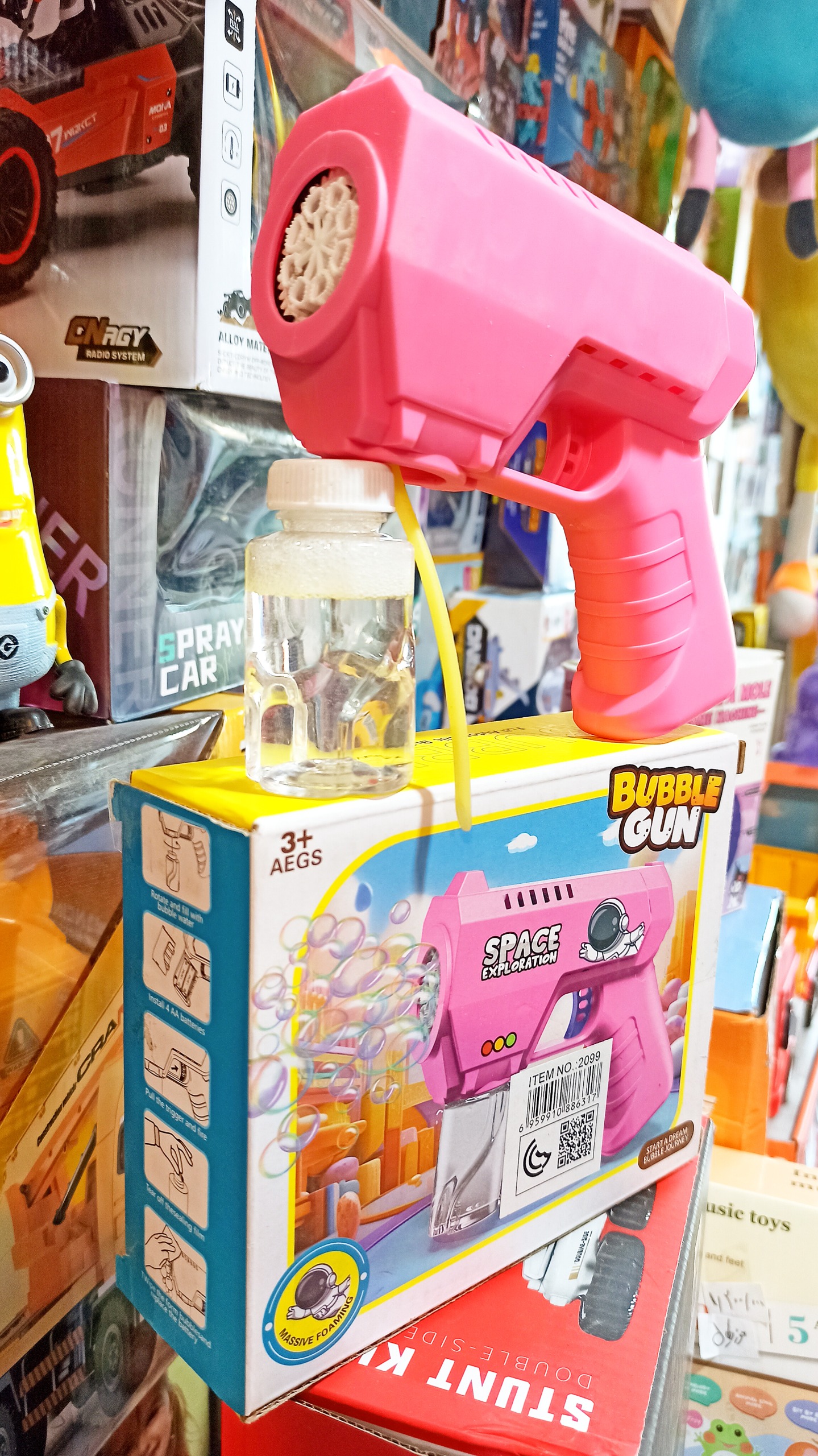 مایع حباب ساز را در زیر تفنگ نصب کرده و با فشار بر شاسی تفنگ مایع حباب ساز پرقدرت از تفنگ خارج شده