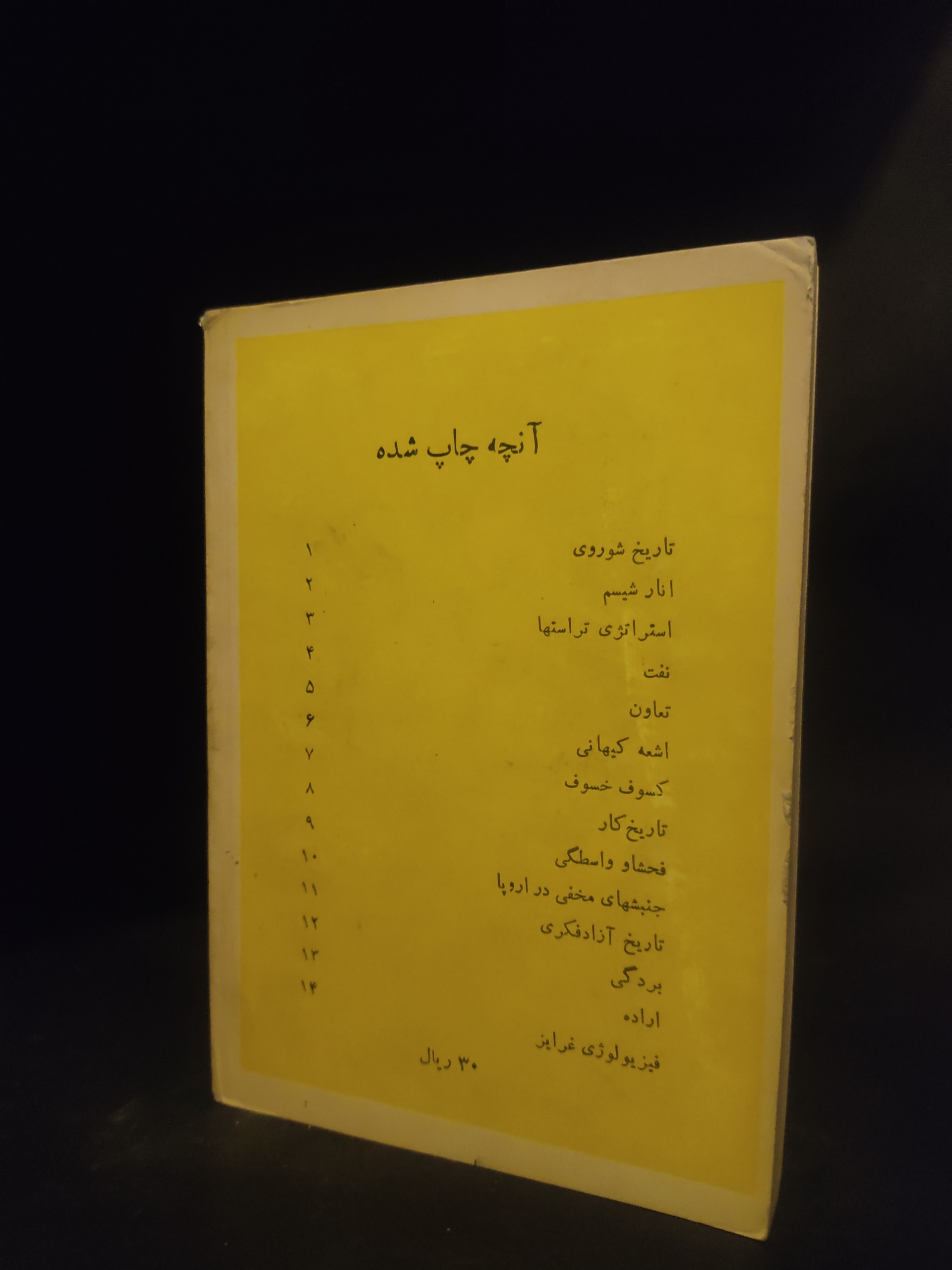 ـ همه کتاب ها، به جز آنانی که «نو» ذکر شده اند، دست دوم محسوب می شوند. شاید برخی بسیار سالم و در حد نو باشند و شاید برخی بر اثر مرور زمان فرسوده.