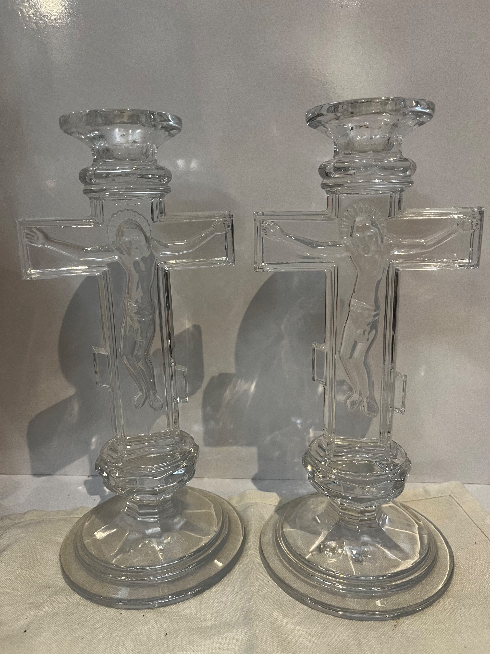 جفت شمعدان های کریستالی حضرت مسیح با طرح برجسته کمیاب و زیبا ارتفاع کار 22 سانت
