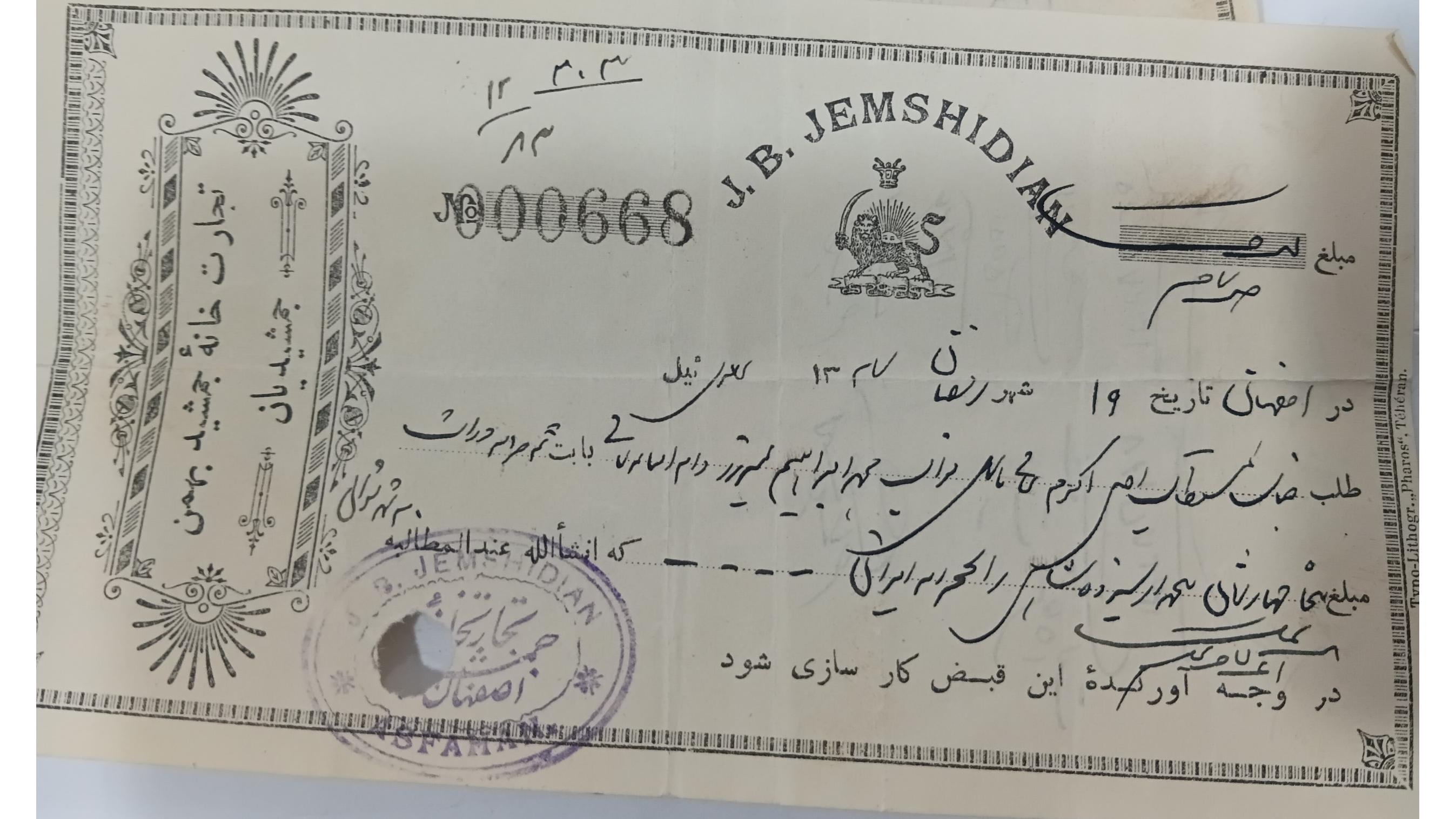 1عدد اوراق و سفته برات جمشیدیان اصفهان