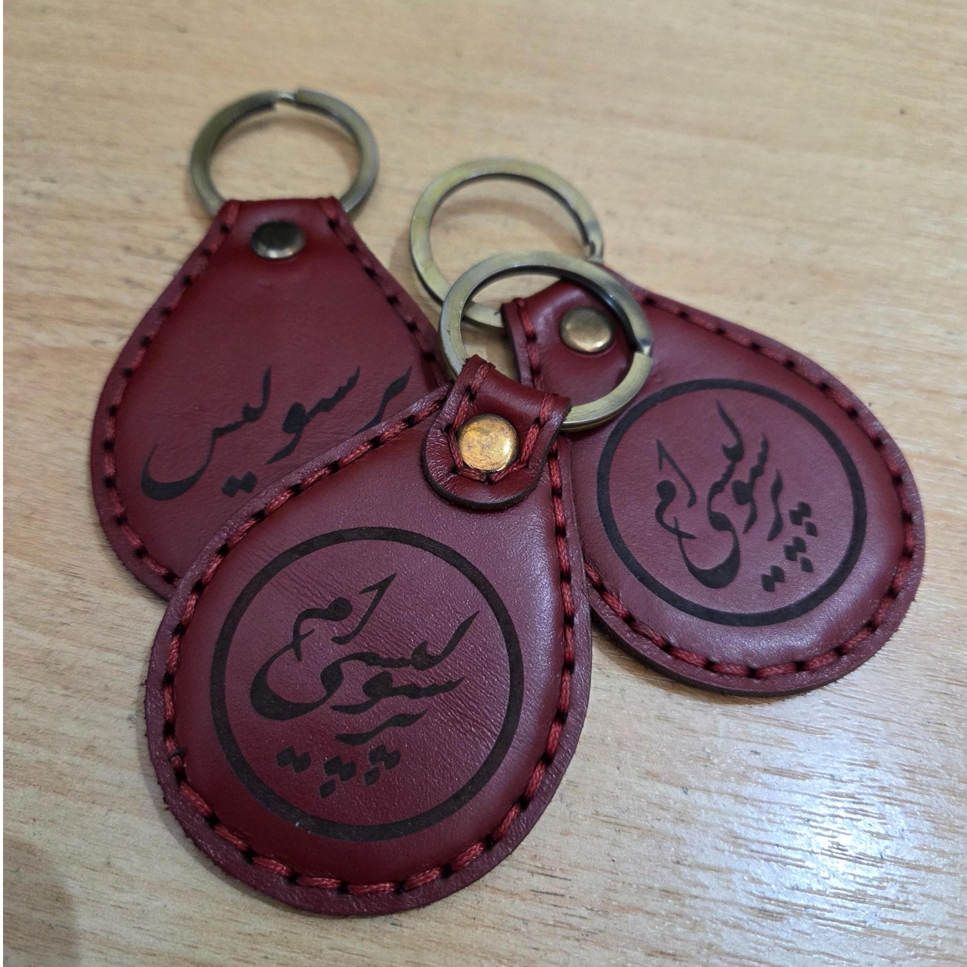 بسته 3 عددی جاکلیدی تمام چرم طبیعی گاوی با حک پرسپولیس در یک سمت و پرسپولیسی ام در سمت دیگر در عین سادگی ، زیبایی خاصی به کلیدهای شما میبخشد.