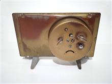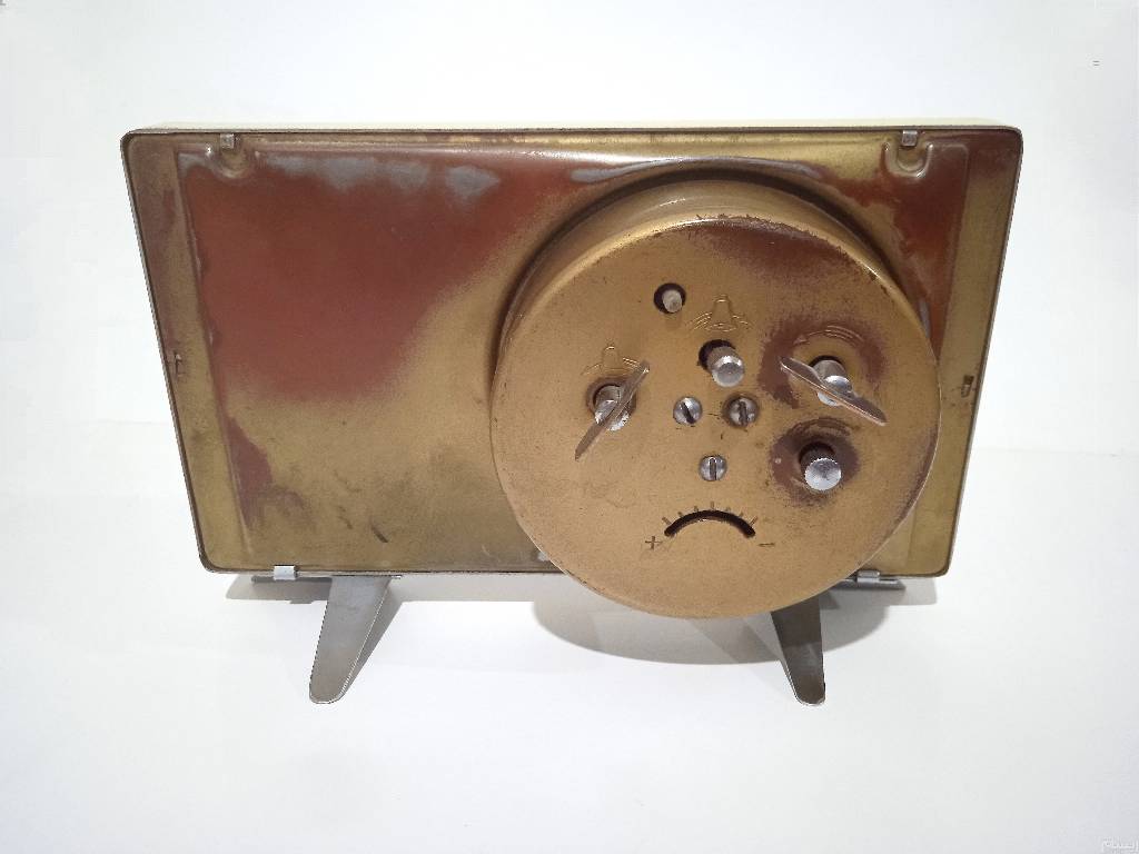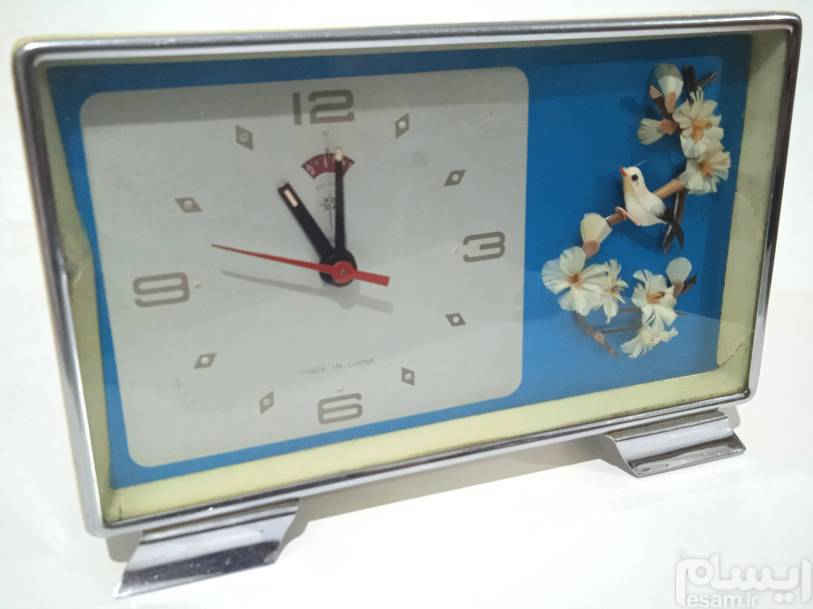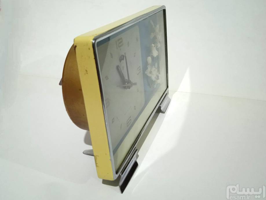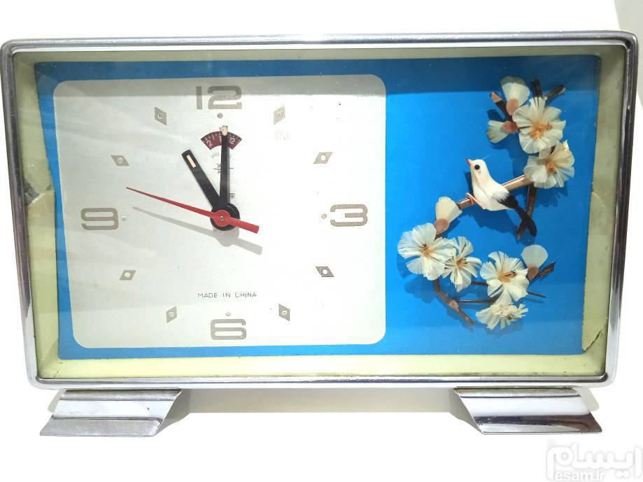 ساعت رومیزی کوکی زنگدار بسیار تمیز و شیک با نقش گل و پرنده زیبا و برجسته یک اثر هنری و کلاسیک ، سالم و بدون ایراد ، یک فرم برای حفظ فاصله صفحه با شیشه قرار دارد که در اثر مرور زمان ترد و شکننده شده ولی در کار و کیفیت و زیبایی آن تأثیری ایجاد نکرده