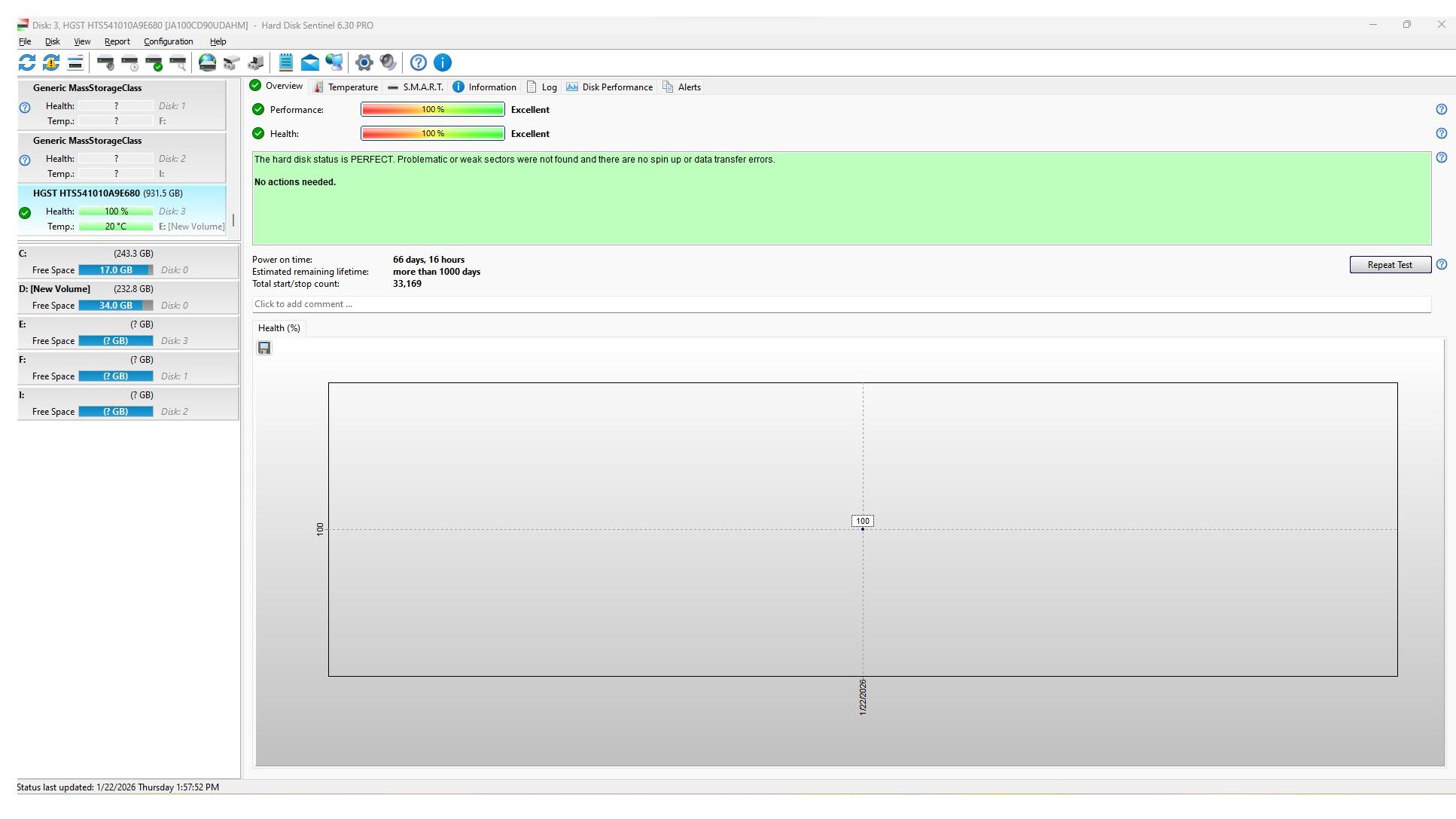 هارد کاملا سالم هست و تصویر تست سلامت هارد گویای همه چیز هست.