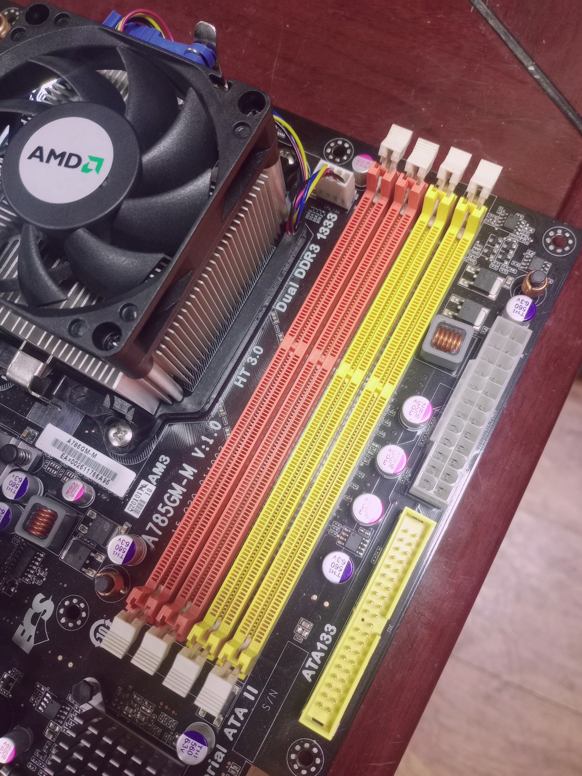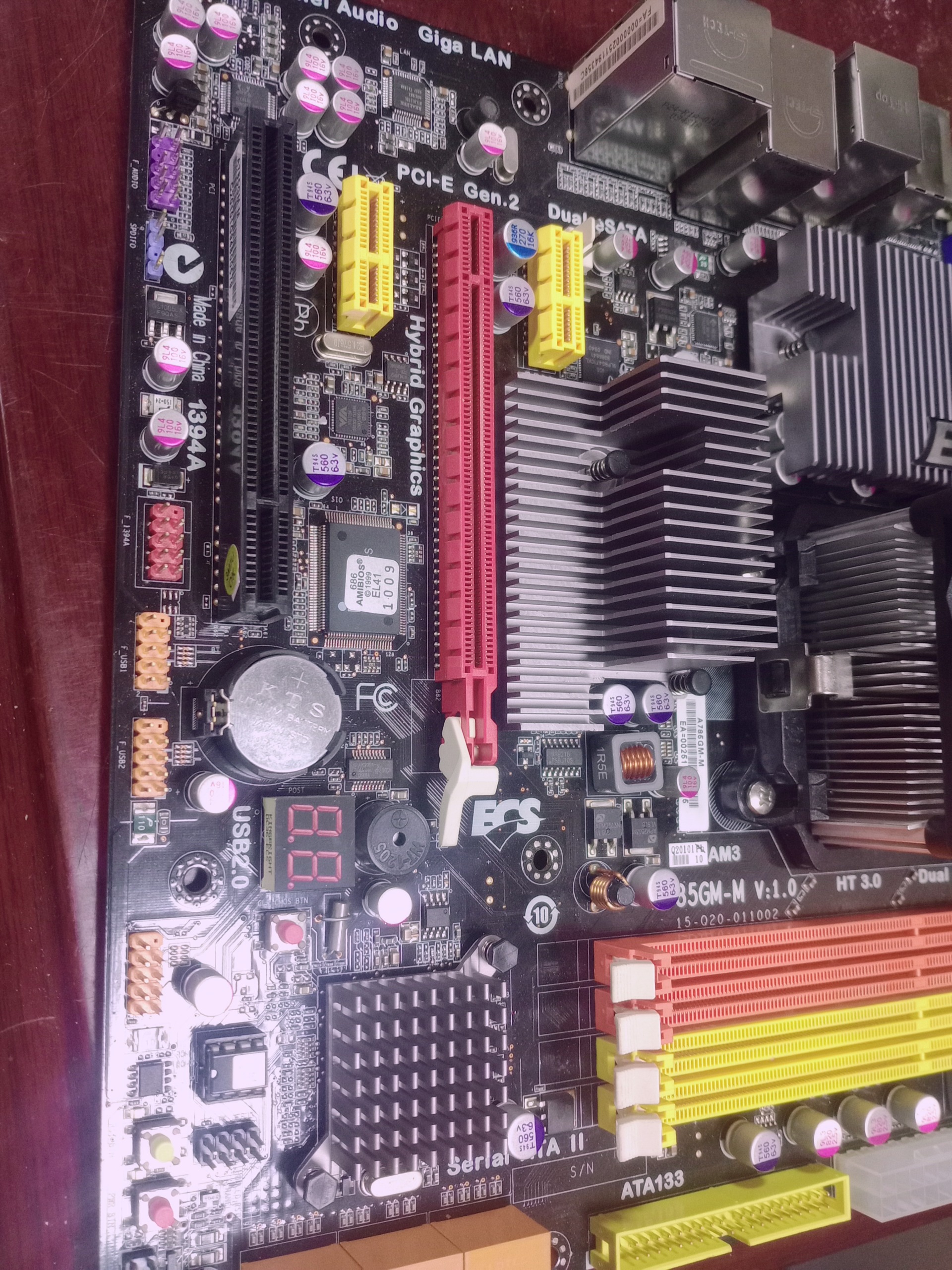 مادربرد a785gm-m الایت گروپ شامل دکمه خاموش روشن وچهار اسلات رم و در کل مادربرد جالبیه