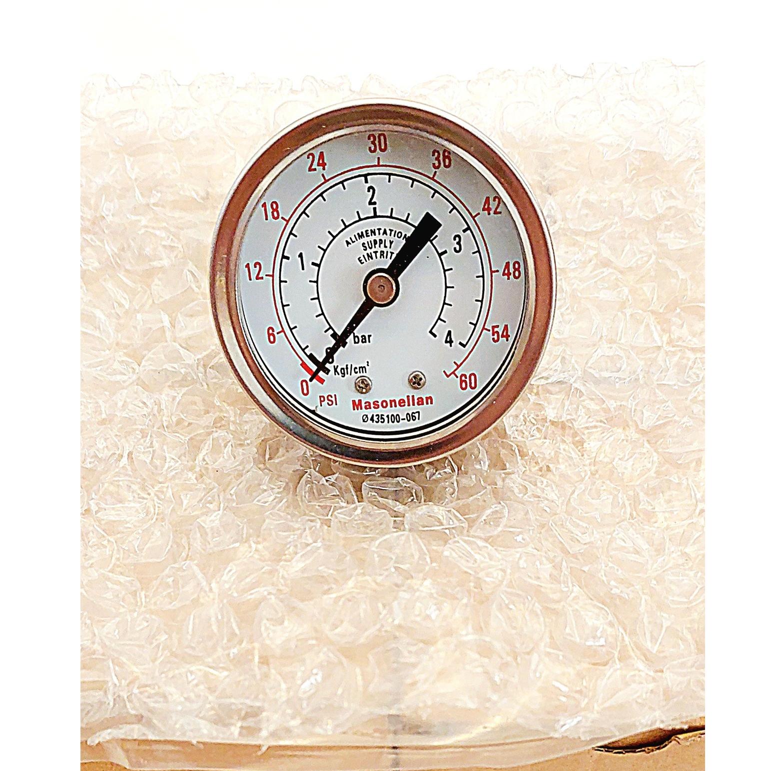 گیج فشار روغنی 4 بار صفحه 5 سانت مکانیسم: سی-تیوب؛ اندازه: صفحه 52 میلیمتر، بلندی صفحه با کانکشن: 52 میلیمتر؛ اتصال: 1/8اینچ، وسط از پشت؛ رنج کارکرد: 0 تا 4بار (0 تا 60psi)؛ جنس بدنه و اتصالات: استیل گرید 316 Pressure Gauge C-Tube Type Dial: 50mm, Outside: 52mmm Diameter Connection: 1/8", Center-Back, NPT Male Range: 0... 4bar (0... 60psi) Body & Wetted: SST316 Material بسته بندی: با جعبه