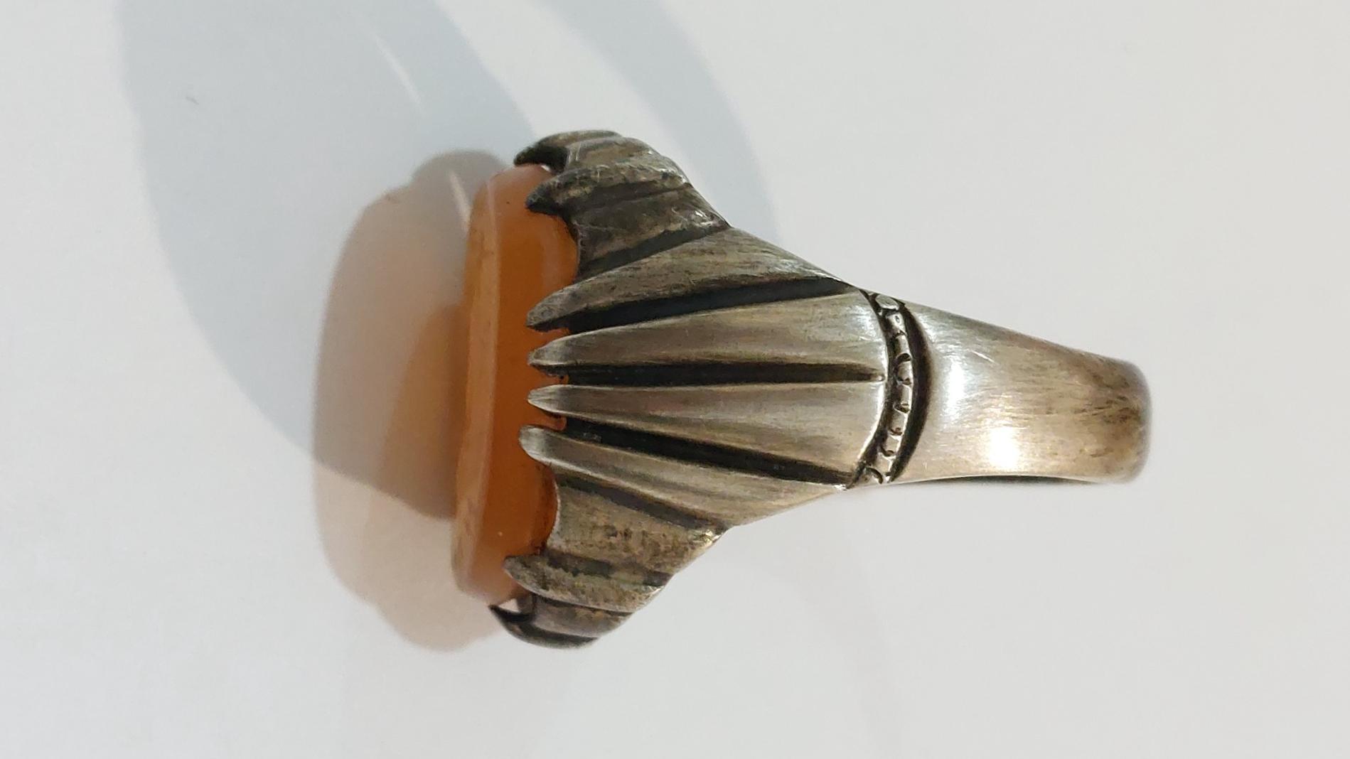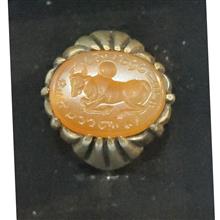 انگشتر نقره با نگین عقیق یمنی با نقش گاو نر