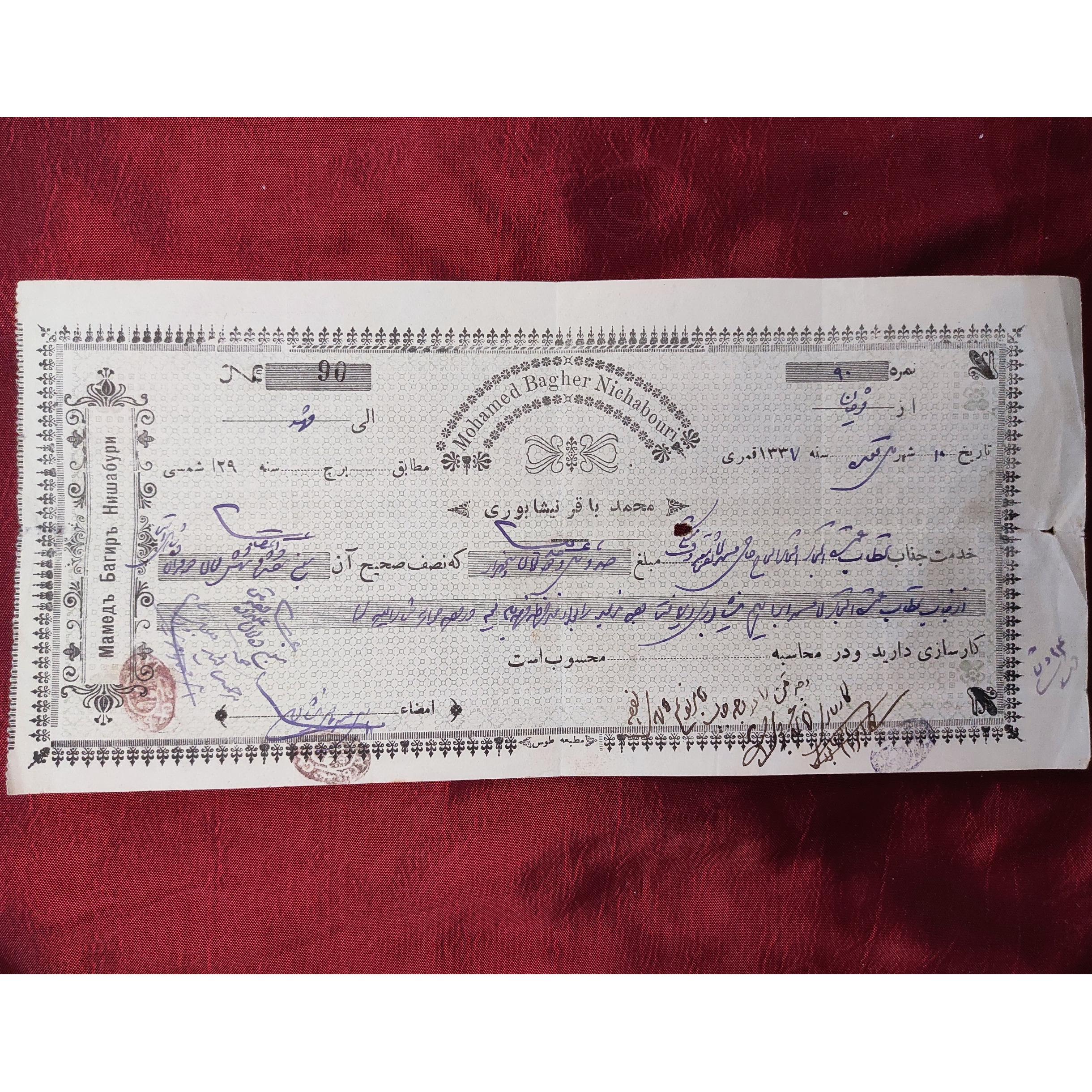 برات قاجاری با مهر پشت برات