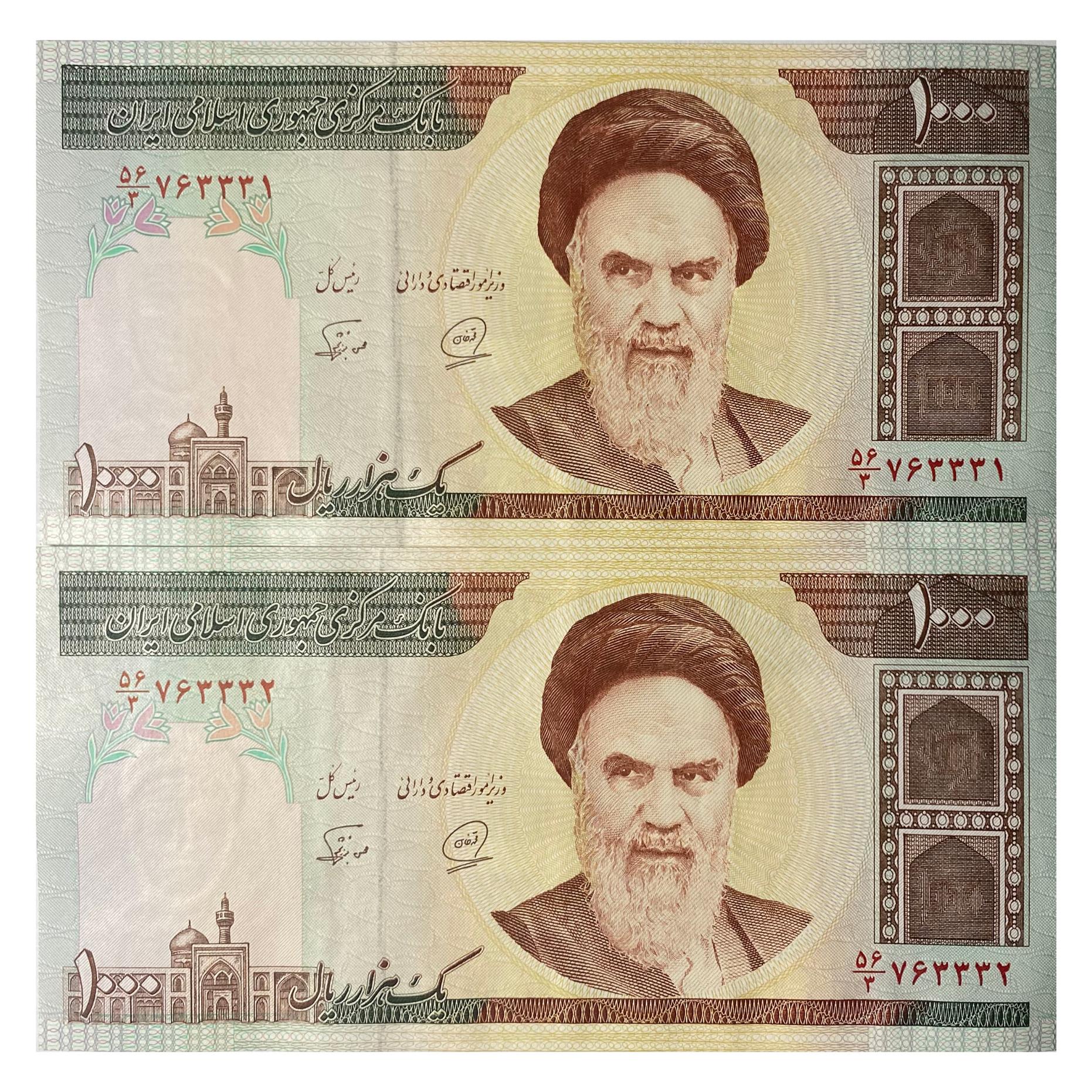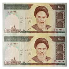 یک جفت (2 عدد) اسکناس 100 تومنی تصویر امام (ره) با امضای کمیاب محمدخان و نوربخش، تقدیم می شود. شماره عین تصویر، کیفیت بانکی و نو، شماره قشنگ و دارای 3 تا 3 پشت سر هم. یک مقدار موج دارد.