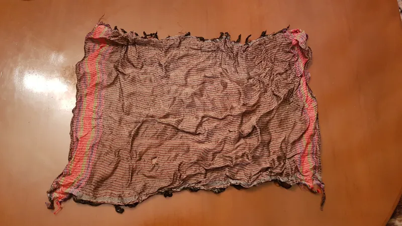 دستمال یزدی ابریشمی قدیمی اصل فقط دوجاش سوراخ هست داخل عکس گذاشته شده به عنوان معیوب گذاشتم که بعدا حرفی داخلش نباشه