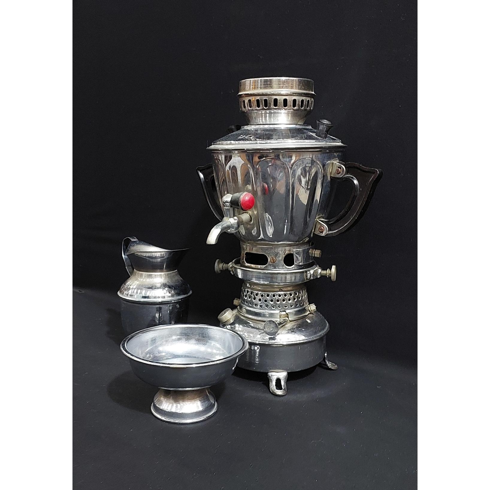 سماور نفتی 1 لیتری قدیمی تمام برنجی به همراه لوازم فابریک کاملا سالم و سلامت و قابل استفاده