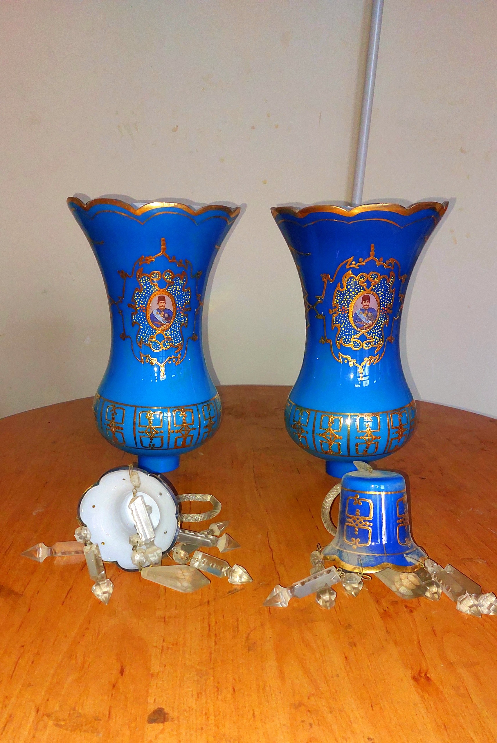 2عدد حُباب بزرگ و 4عدد آویز چراغ قدیمی،دستساز،آنتیک