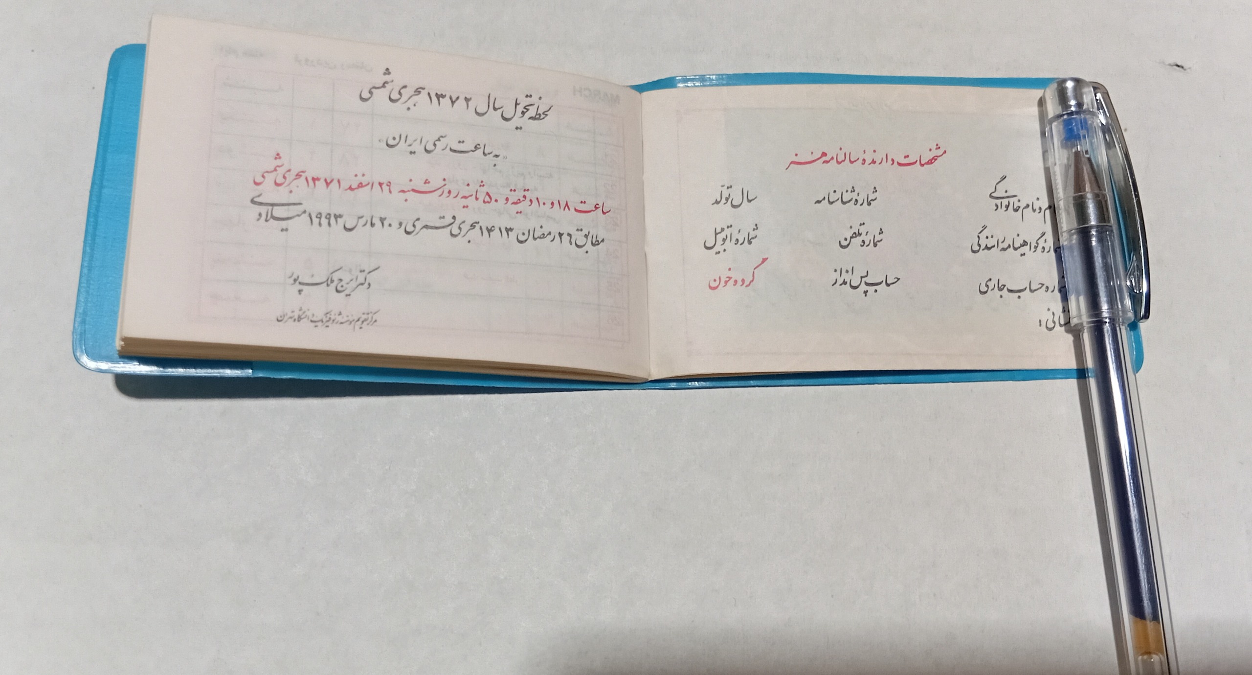 تقویم جیبی مصرف نشده سال 1372
