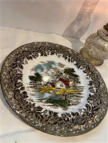 کار بسیار زیبا و خاص و کلکسیونی و پرنقش و جزییات با طرح منظره دریاچه و مناظر اطراف و دورکارهم طرح گل کار شده.