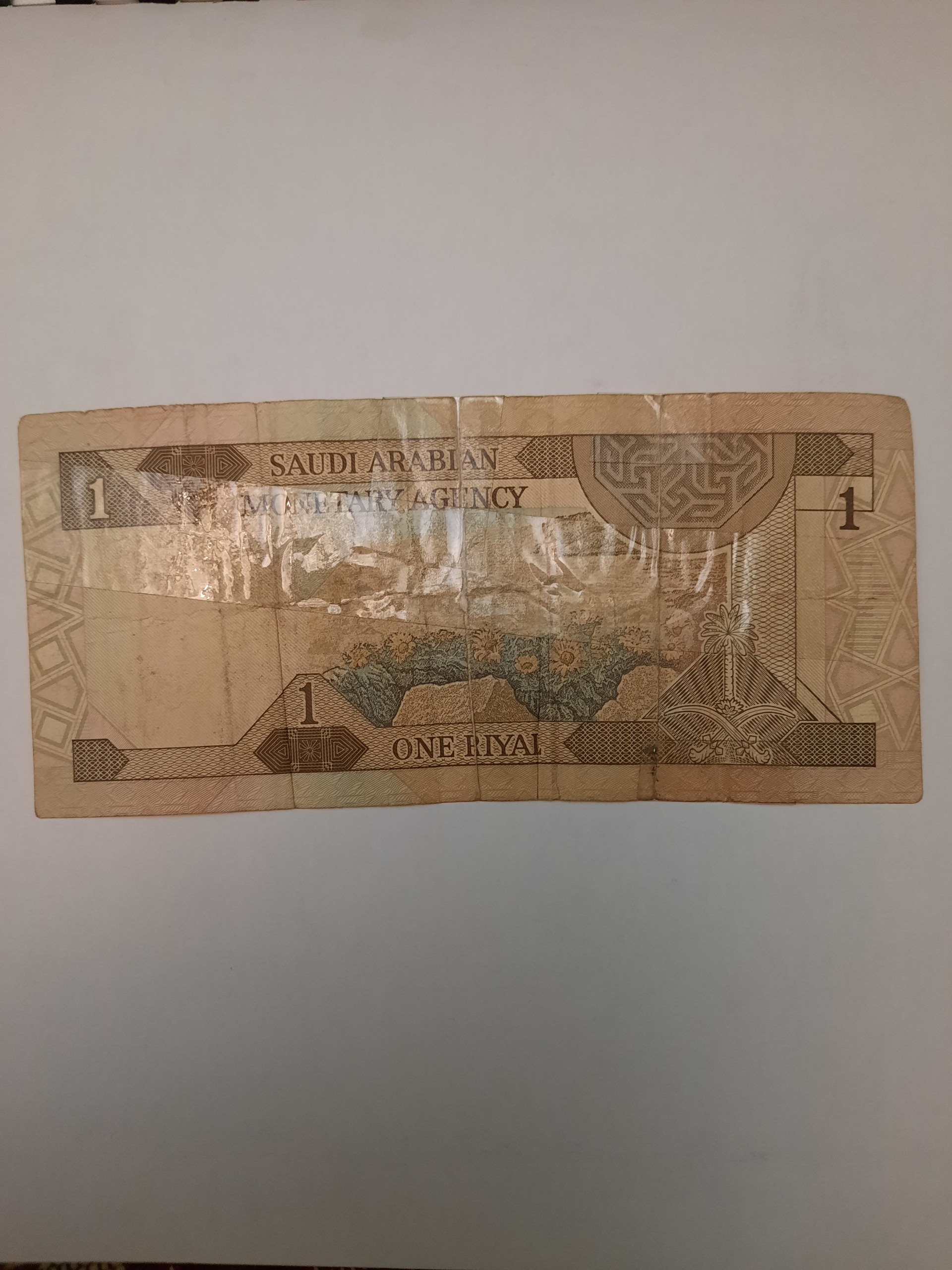 تک کارکرده چسب دار اسکناس 1 ریال قدیم عربستان