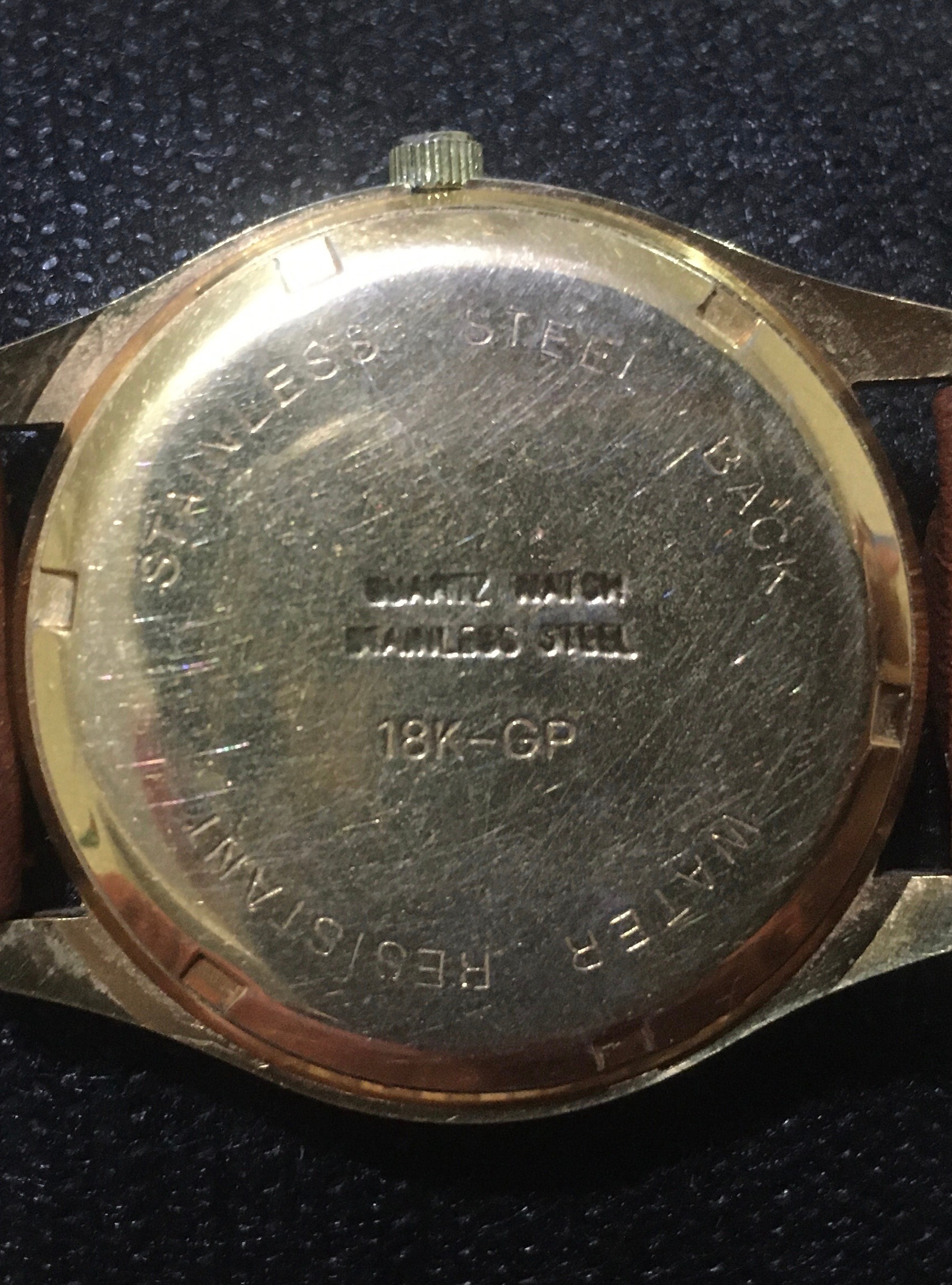 داخل ساعت از طلا استفاده شده که پشت ساعت این موضوع حک شده 18K GP که مخفف gold plate هست