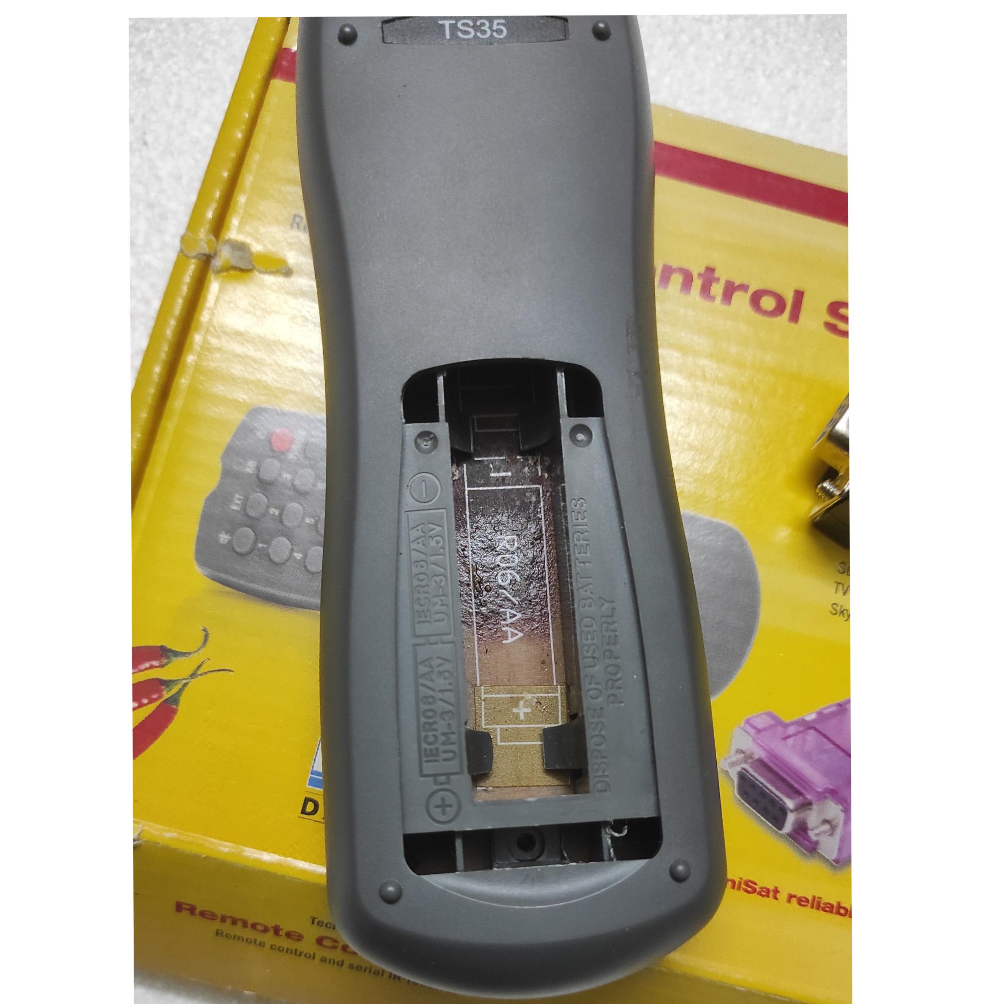 چشمی که نو هست و دست نخورده اما ریموت بیرون بود یه چیزی افتاد روش و به ضربه خورده کنار دکمه 2 فکر کنم و از طرفی انگار اولین بار که میخواسته تست بشه باتری توش جامونده و مدت زیادی کنار افتاده بوده و مقداری داخلش سولفاته کرده