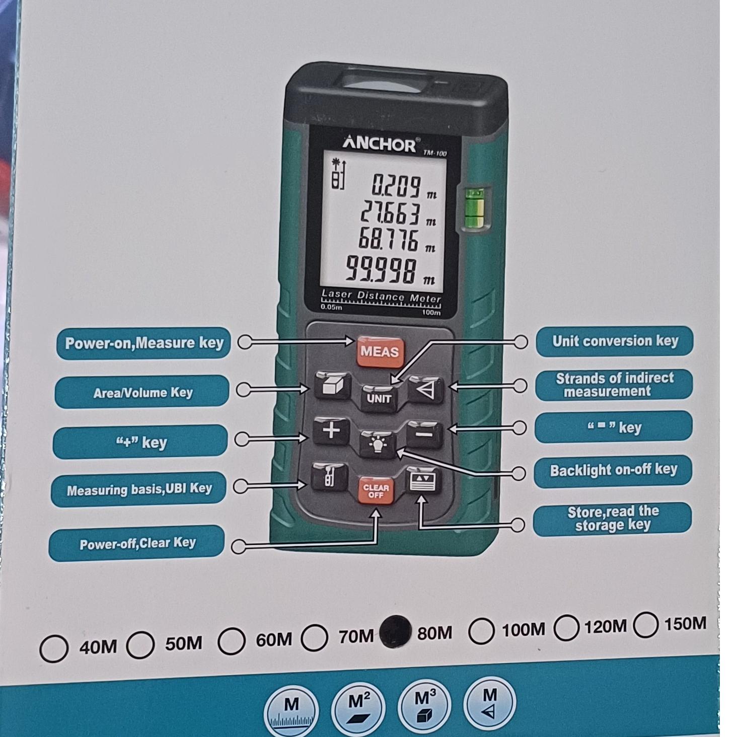 متر لیزری 80 متری آنکور یکی از بهترینهای بازار چه از لحظ کیفیت چه از لحاظ قیمت و از همه مهمتر جزء معدود مترهای لیزریست که دارای گارانتی معتبر میباشد چه بسا بسیاری از مترها لیزری گرانقیمت فاقدگارانتی معتبر میباشند !و این حسن از ویژگیهای این خرید و محصول با ارزش میباشد.