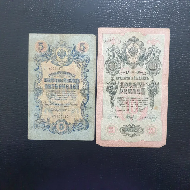 دو تک اسکناس 10 و 5 روبل تزاری روسیه