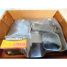 ست 8 پارچه اداری رومیزی جنس پلاستیک مشکی و چرم قهوه ای خشک همراه با 12 عدد کلیپس کاغذ و 1 عدد پانچ کاغذ