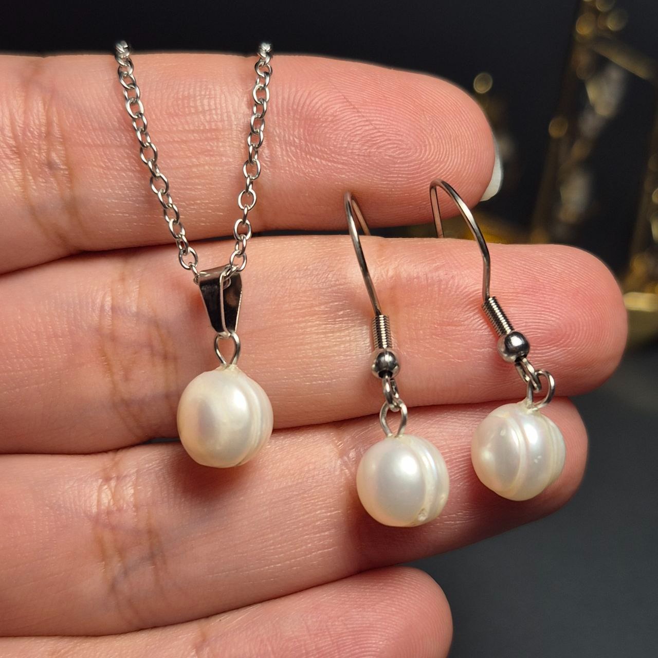 ست گردنبند و گوشواره مروارید اصل