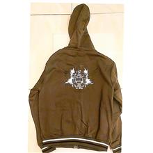 ست دو تکه گرمکن ورزشی، کلاهدار و زیپ دار سایز M اندازه (سانتیمتر) آستین: 58، بلندی لباس: 51 ×63، بلندی شلوار: 98، کمر: 32 تا 42 کشدار جنس فوتر، پنبه، رنگ زیتونی