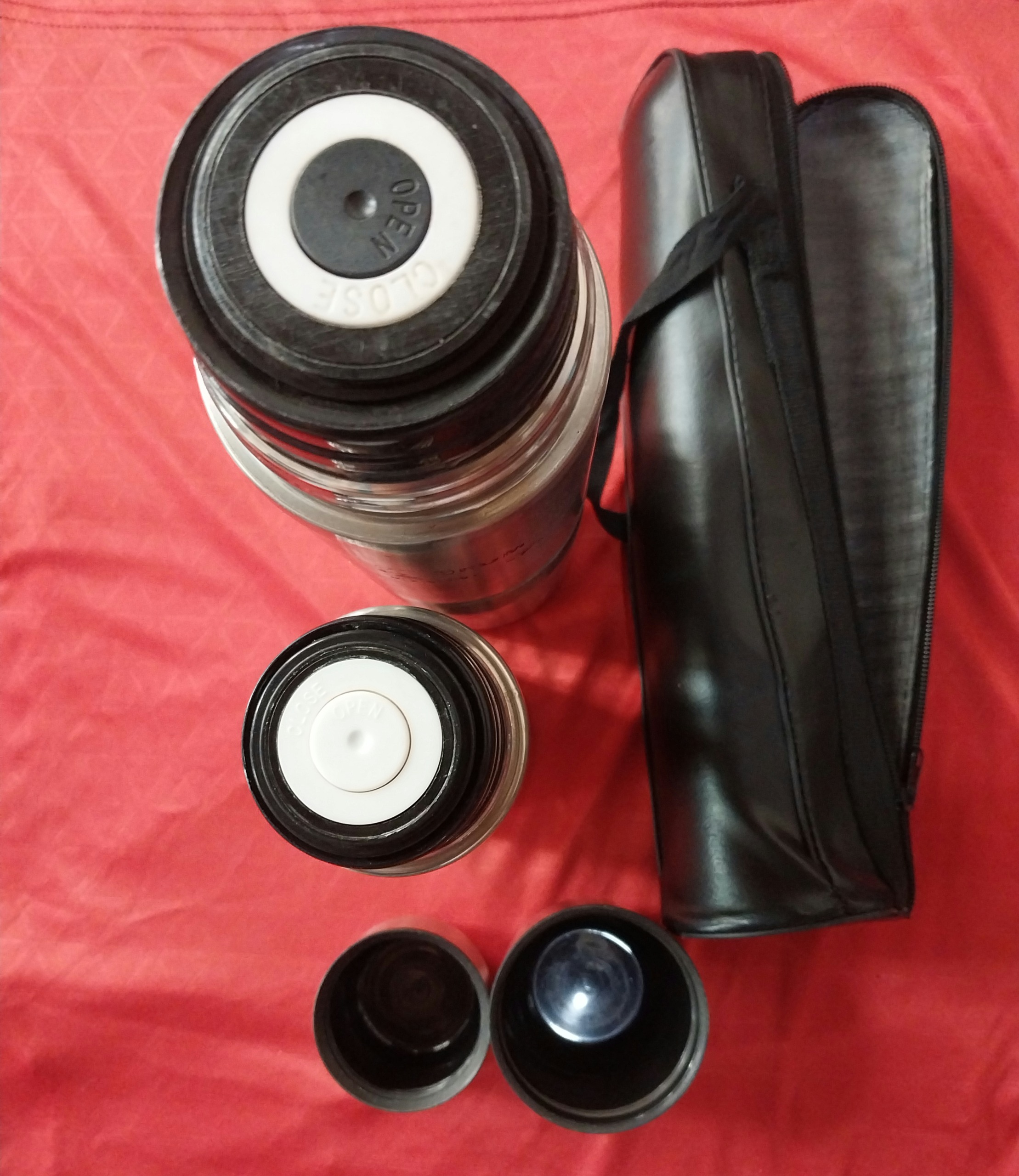 یکی کاور زیب دار چرم داره ظاهری کاملا سالمه فقط سرد میکنن برای چایی ولی بعنوان قمقمه و آب عالیه .و کسی متعلقاتش لازمش باشه یا بتونه درست کنه عالیه من جای نشون ندادم