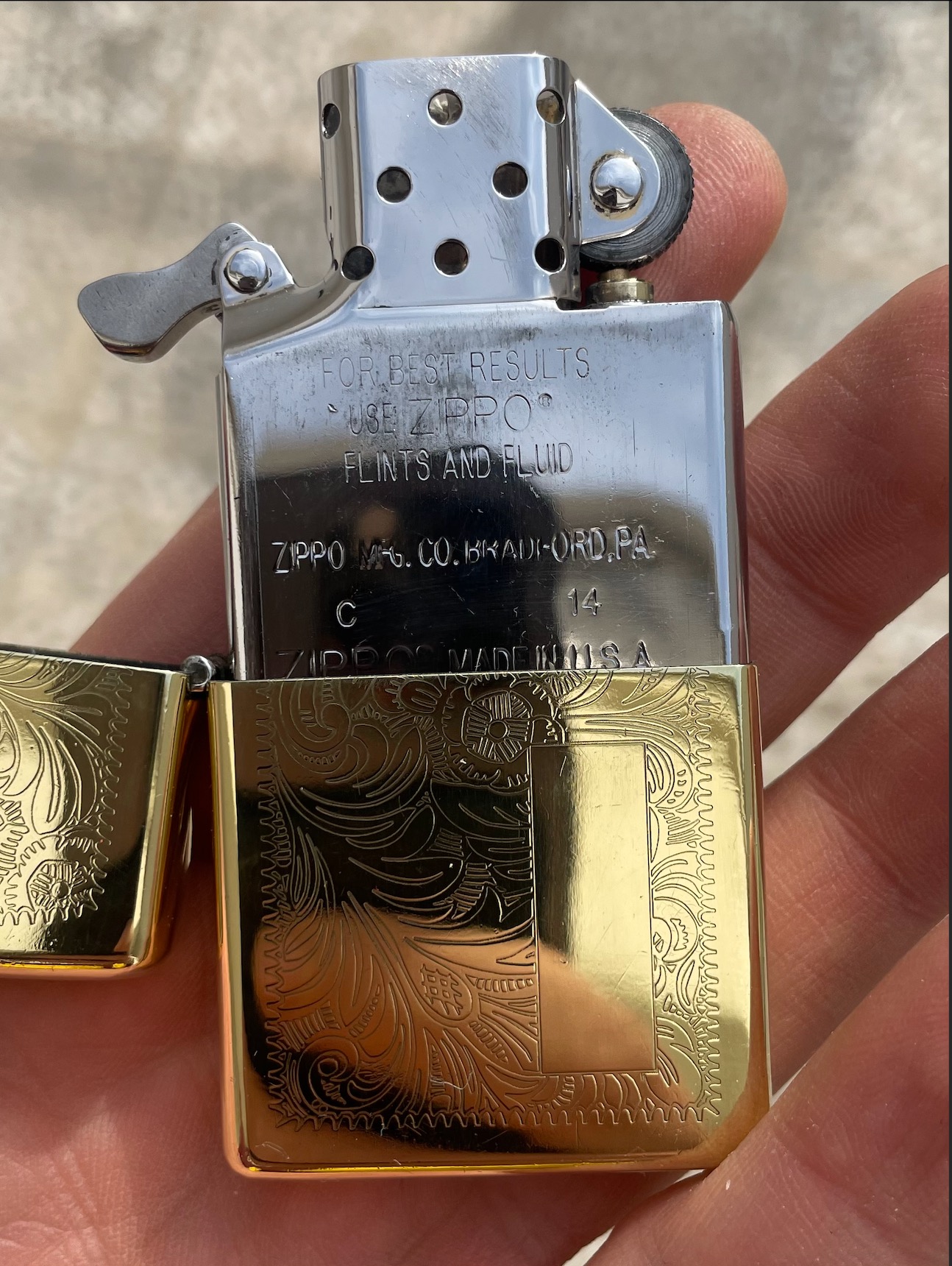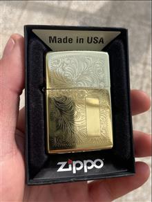 فندک زیپو طلایی دو طرف طرح دار نو zippo