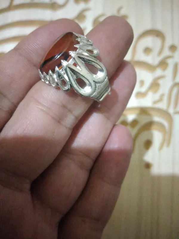 انگشتر قدیمی عقیق. مسی. روکش نقره