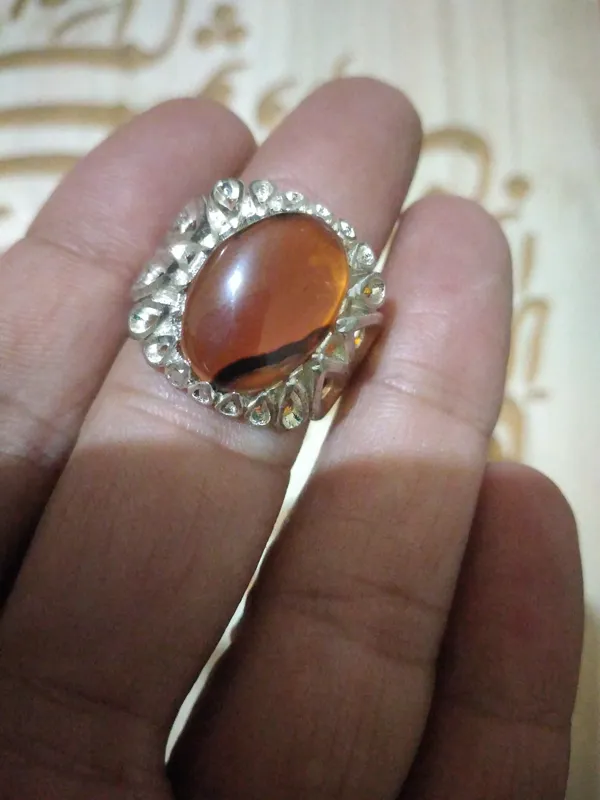 انگشتر قدیمی عقیق. مسی. روکش نقره