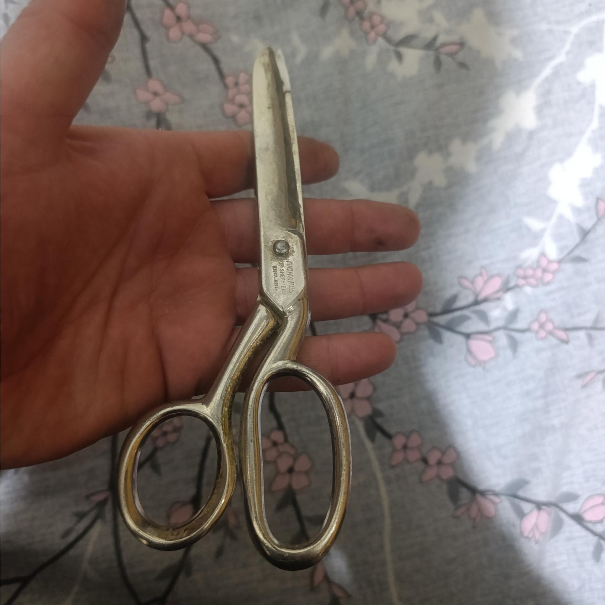 یک عدد قیچی انگلیسی اصل مارک ریچارد تیغه بکر یه کار قدیمی و خاص انگلند و شما هم هم دو طرف قیچی هم روی تیغه حک شده کار قدیمی هست نو نیست حد عقل 60سالش هست اما با یه مستقل کوچیک مثل تیغ تیز میشه
