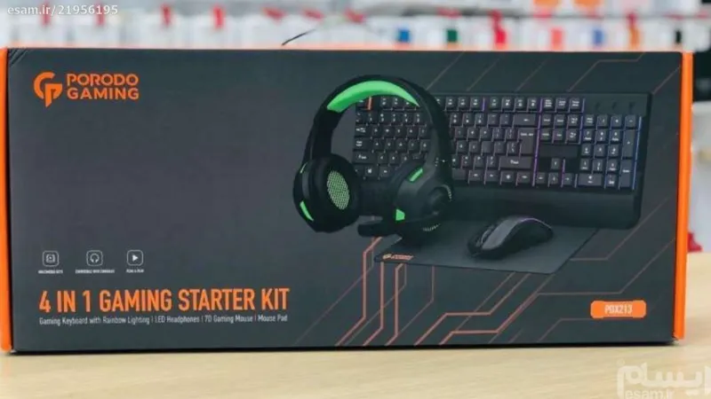 شرکت Porodo یکی از بزرگترین و معتبرترین شرکتهای فعال در حوزه تجهیزات مخصوص بازی است که انتخاب اول بسیاری از گیمرهای حرفهای بهشمار میآید. از ویژگی های بارز محصولات این شرکت می توان به کیفیت ساخت خوب نوآوری و تکنولوژی در کنار قیمت مناسب اشاره کرد . ست گیمینگ کیبورد موس هدفون و پدموس پورودو مدل PDX213 یک پک حرفه ایی و کامل برای یک گیمیر میباشد که تمامی نیاز هایش را برآورده میکند. هر قسمت از این ست دارای مشخصات کامل و جامع خود میباشد که به شرح زیر است : کیبورد : دارای 104 کلید انگلیسی و عربی میباشد که به وسیله یک کابل 180 سانتی متری از جنس PVC به PC و لپ تاپ شما متصل میشود . همچنین از نظر ظاهری این کیبورد بسیار زیباست و دارای نور RGB است که هنگام بازی و استفاده از آن هیجان بیشتری را به شما میدهد. هدفون : این هدفون بسیار زیبا و سبک دارای اتصال سیمی و رابط جک 3.5 میلی متری است که طول کابل آن 2 متر میباشد که البته این هدفون به دلیل داشتن نور های RGB یک عدد پورت USB جهت تامین برق نورها نیز دارد.درایور های این هدفون 40 میلی متری و امپدانس آن 32 اهم میباشد که باعث ایجاد کیفیت مناسبی برای شما میشود که هنگام گیم از آن لذت ببرید. موس : موس این ست جذاب گیمینگ نیز دارای اتصال سیمی با کابلی به طول 1.5 متر میباشد که دارای ظاهری زیبا و سبک به وزن 129 گرم میباشد.این موس دارای 7 رنگ نور میباشد که مجدد هنگام بازی در شب و ... میتوانید احساس هیجان زیادی را در بازی تجربه کنید. دقت آن بین 800 تا 3200 DPI میباشد که برای یک گیمیر کافی است و بر روی بدنه خود دارای 7 دکمه نیز میباشد. موس پد: دارای ابعاد مناسب 25x35x.3 سانتی متر میباشد که از جنس رویه ی پارچه ایی مخصوص و جنس زیرین از لاستیک جهت ایجاد اصطکاک و لیز نخوردگی میباشد.