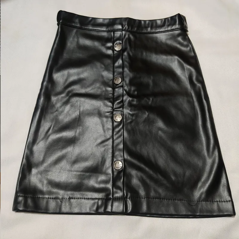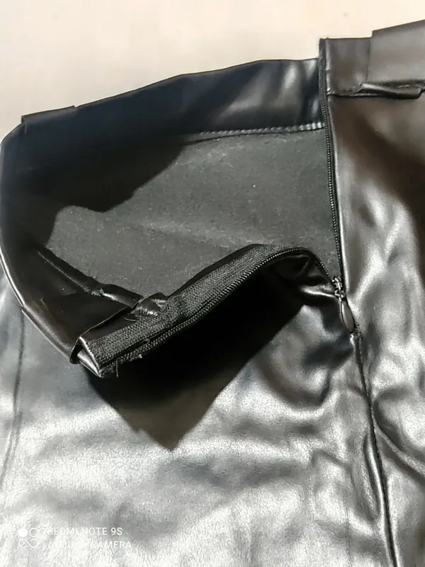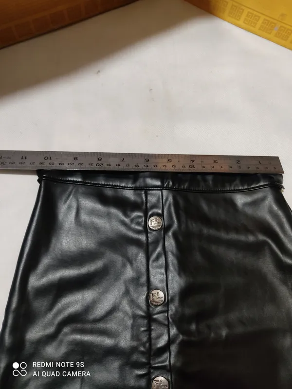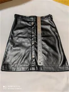 دامن کوتاه چرمی مجاسی کمربندخور زیپ دار از چرم مصنوعی کاغذی آستر پنبه با عرض کمر 27 سانت دو لا و اندازه قد دامن 35 سانت .